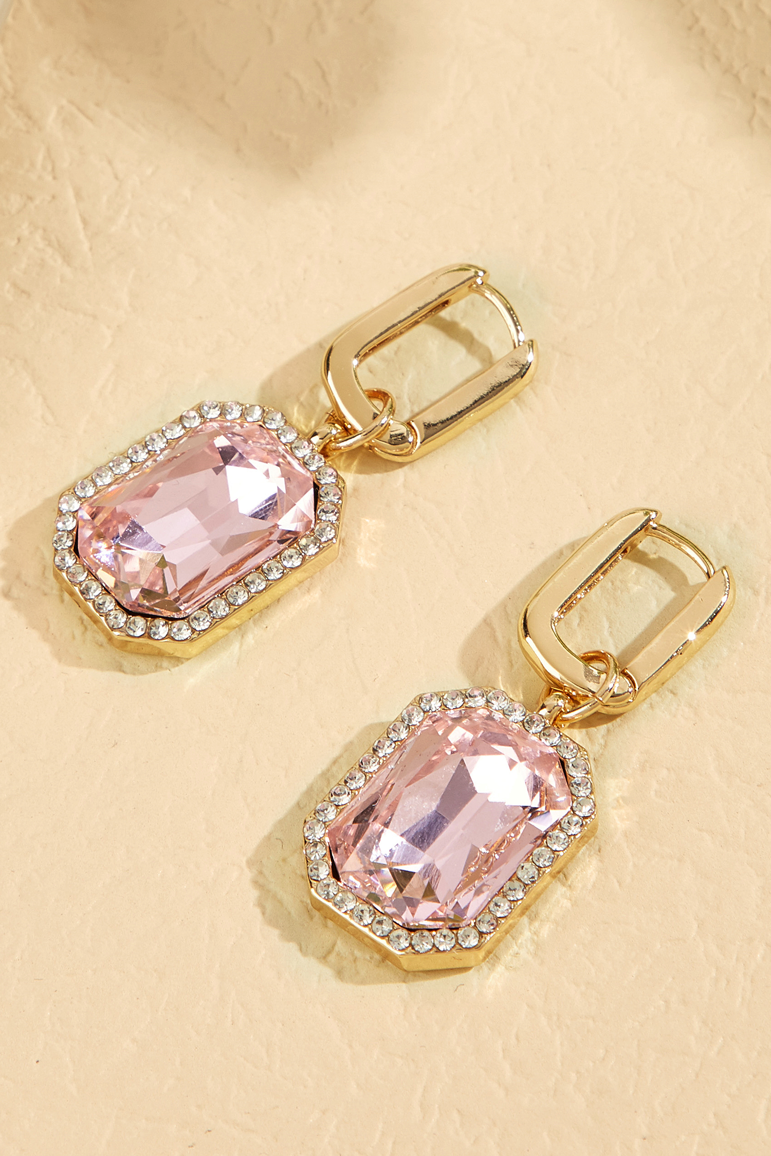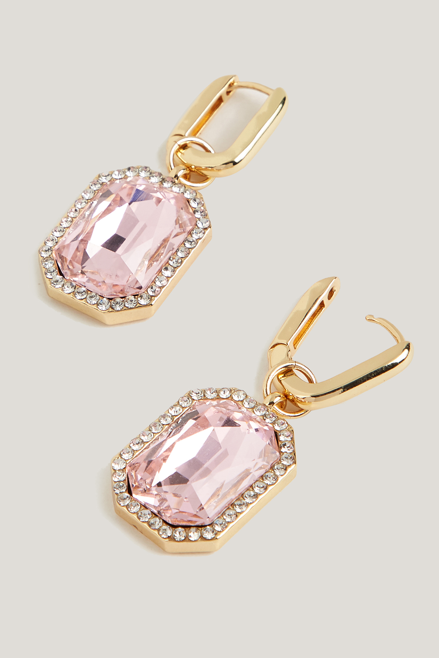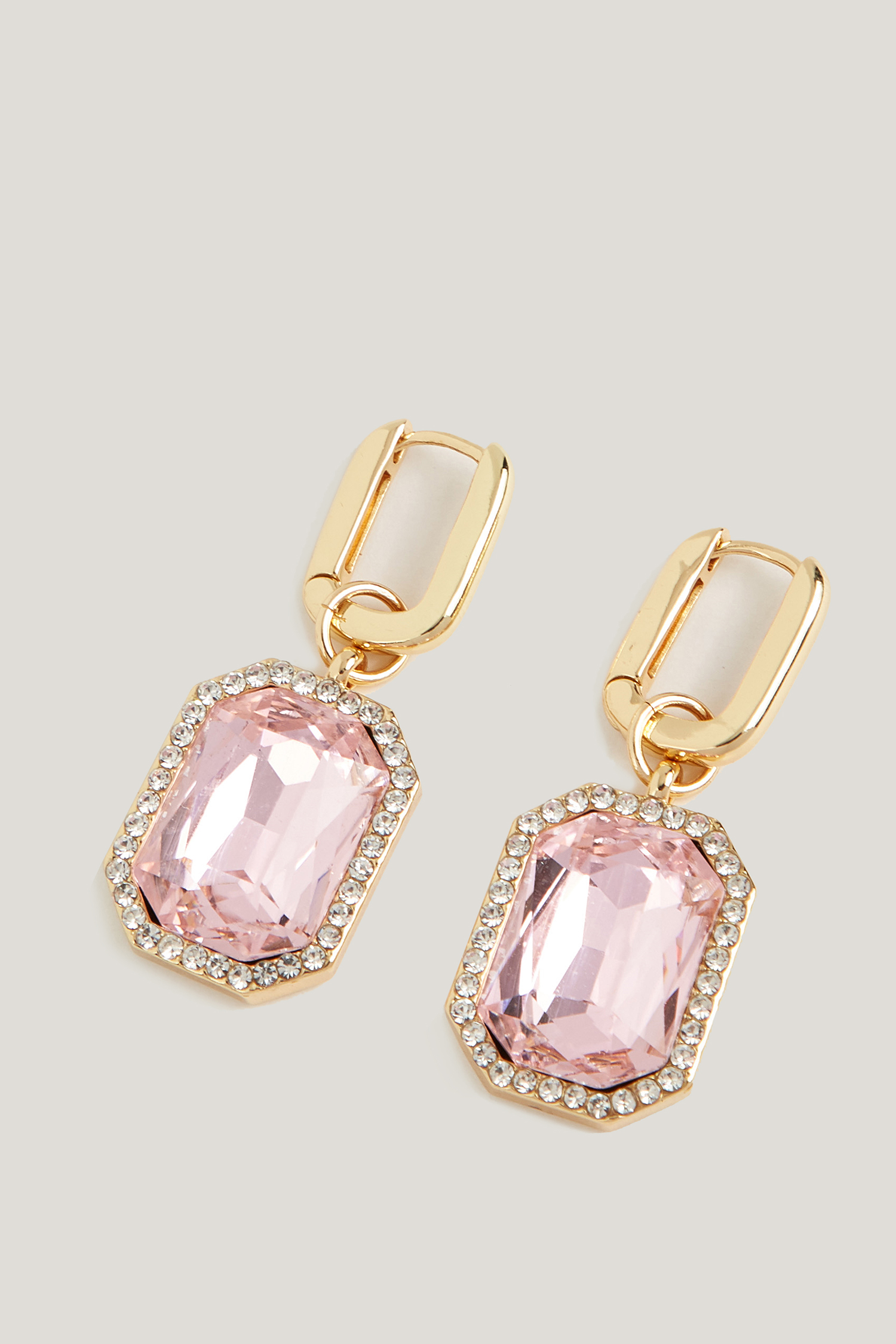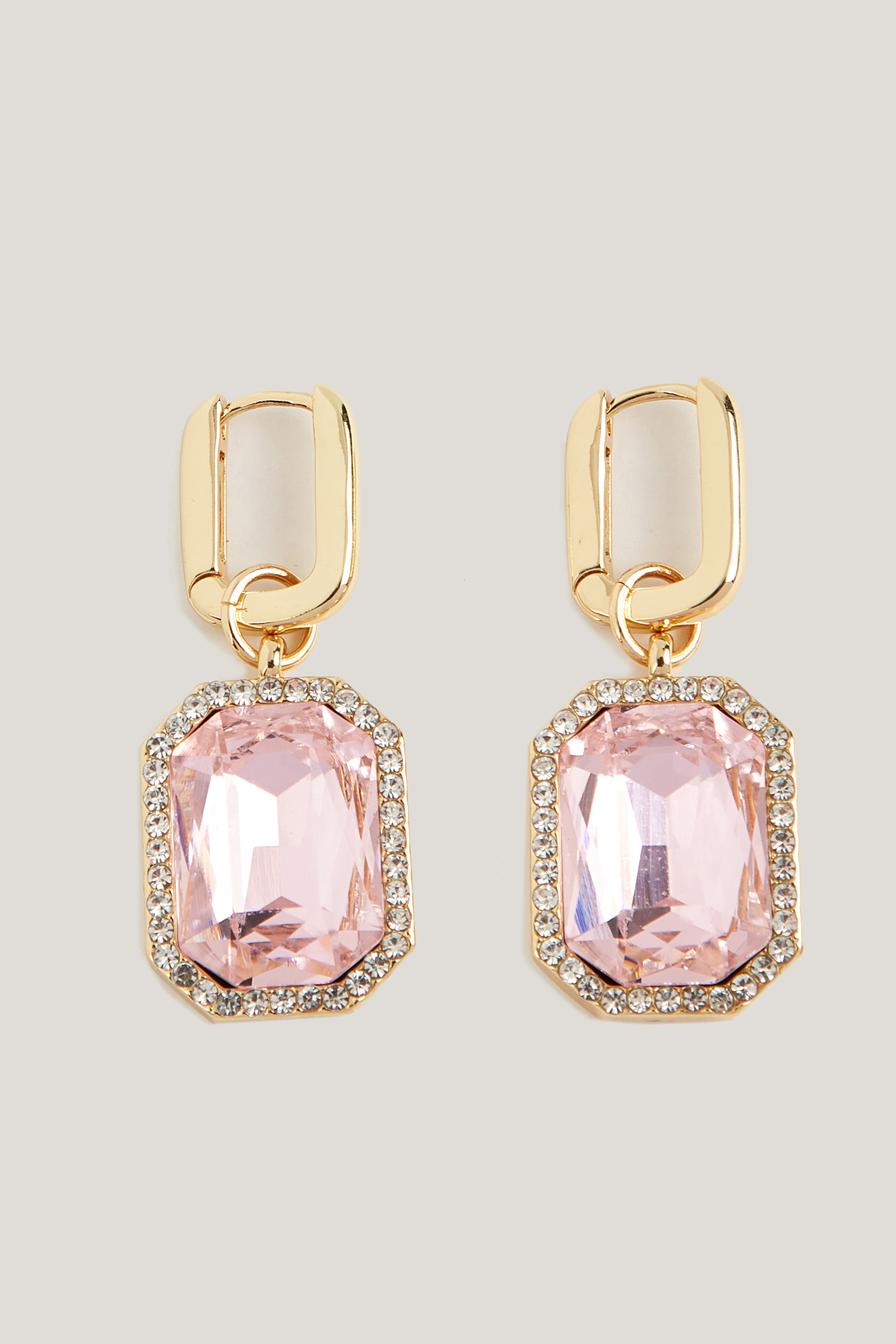 Goldfarbene Ohrhänger mit rosa und klarem Kristall