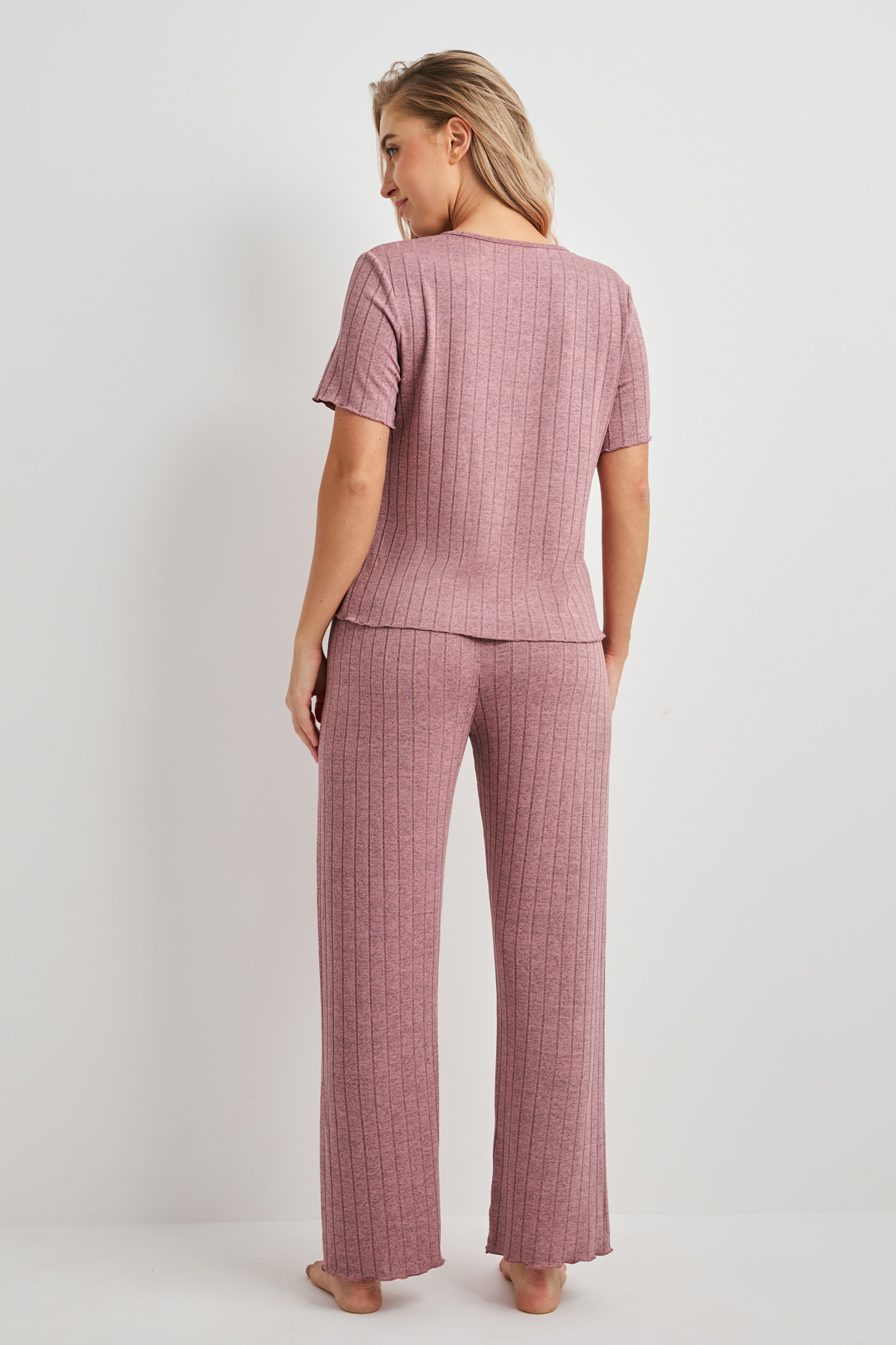 Rosa Pyjama-Set aus Strick-Oberteil & Hose
