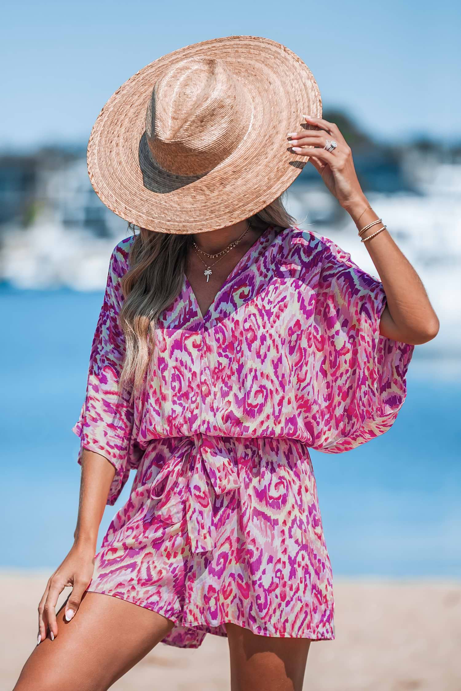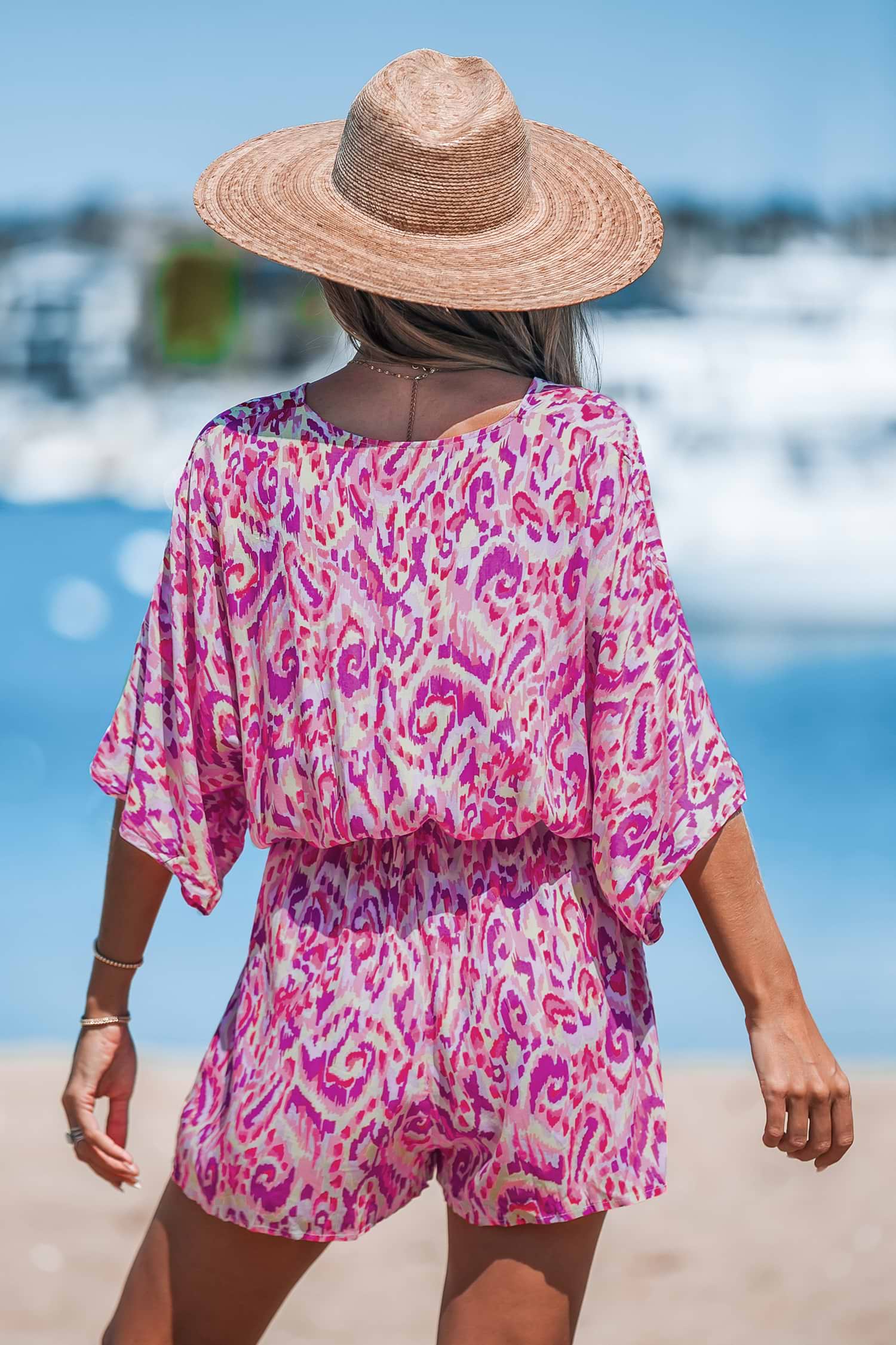 Rosa tief ausgeschnittener Strampler mit weitem Bein