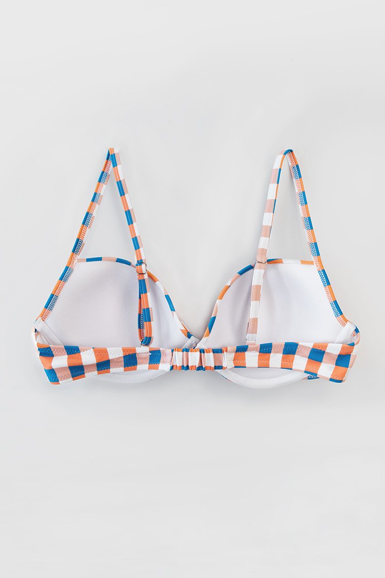 Plaid Bikini-Oberteil mit Bügel in Blau Orangeund Weiß
