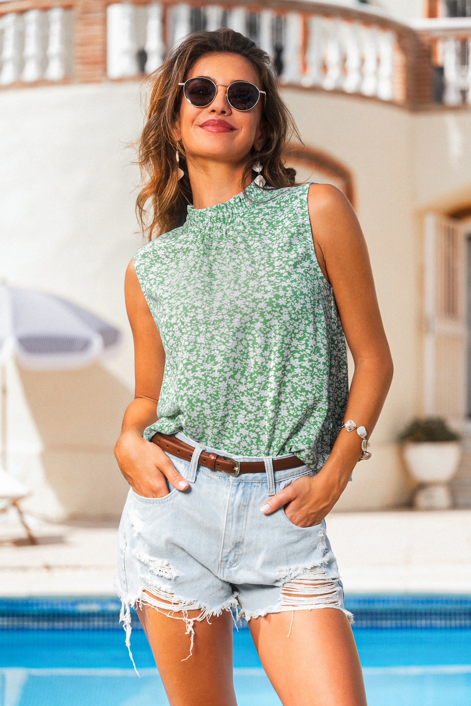 Grünes Ärmelloses Hoher Ausschnitt Top mit Blumenmuster