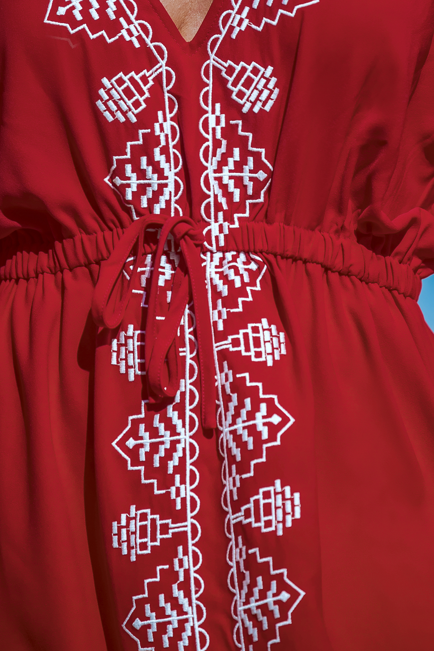 Rotes Cover-Up-Minikleid mit bestickten Dolman-Ärmeln