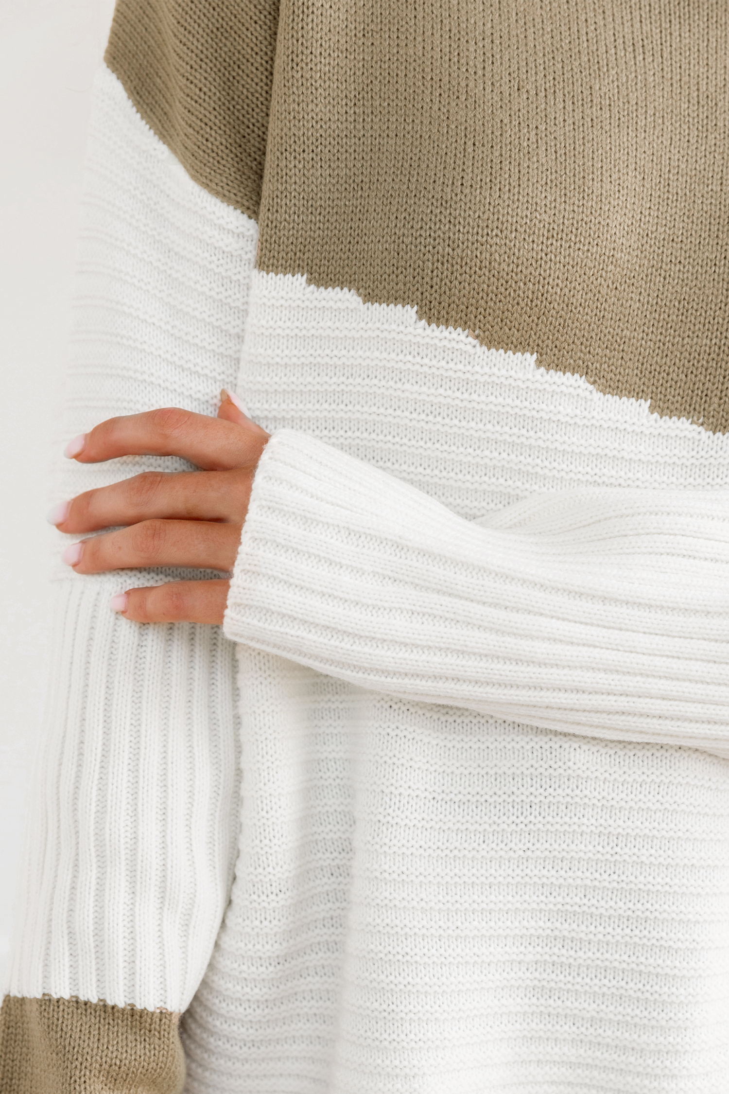 Erhöhen Sie Ihren Stil mit unserem gerippten Colorblock-Pullover mit Stehkragen. Dieser Pullover ist die perfekte Mischung aus Komfort und auffälligem Design und damit die ideale Wahl, um ein modisches Statement zu setzen und gleichzeitig gemütlich zu bleiben.