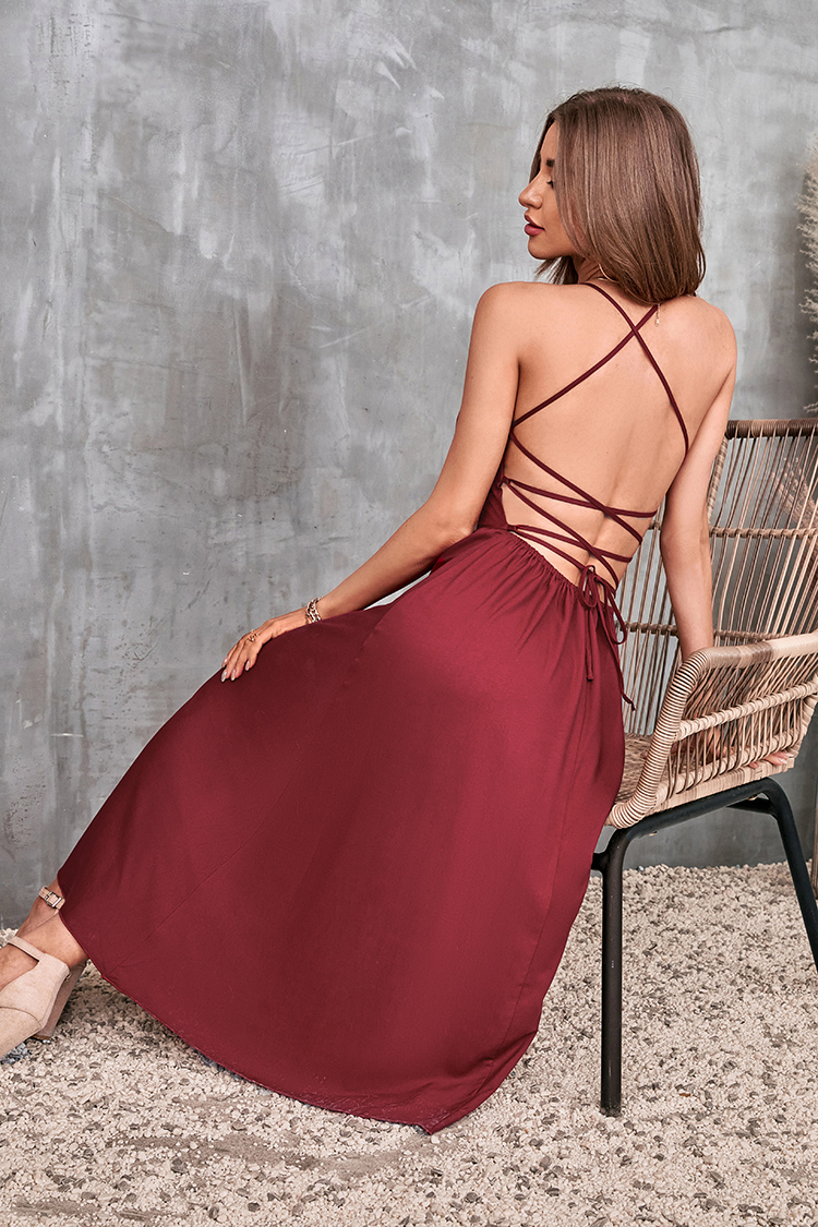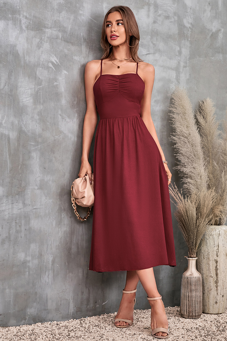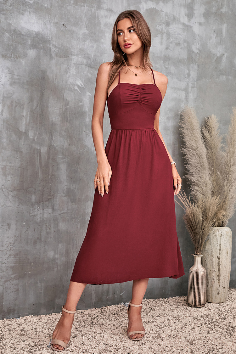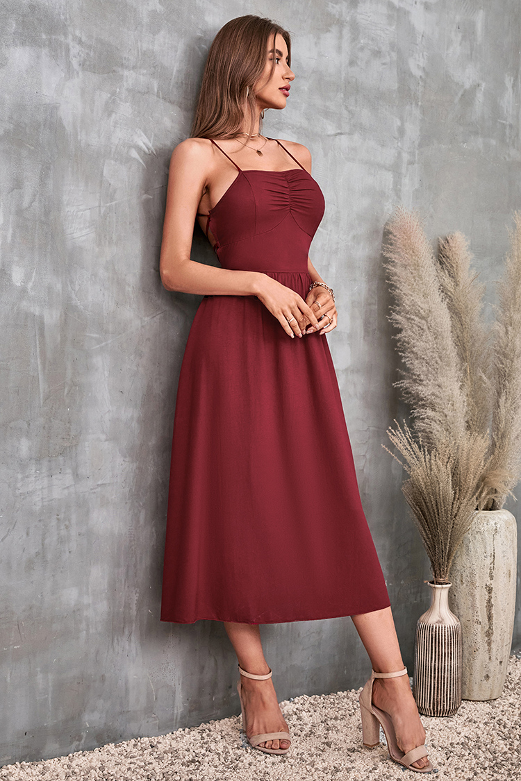 Rotes Rückenfreies Slip-Kleid mit Kordelzug und dünnen Trägern