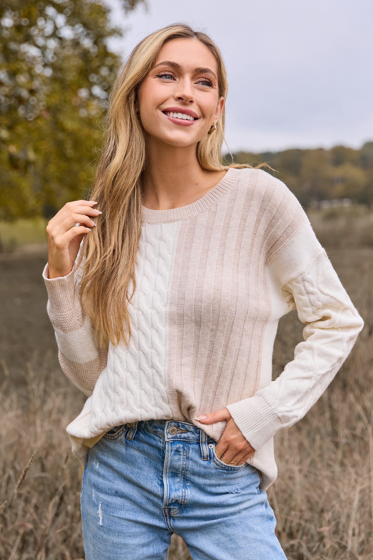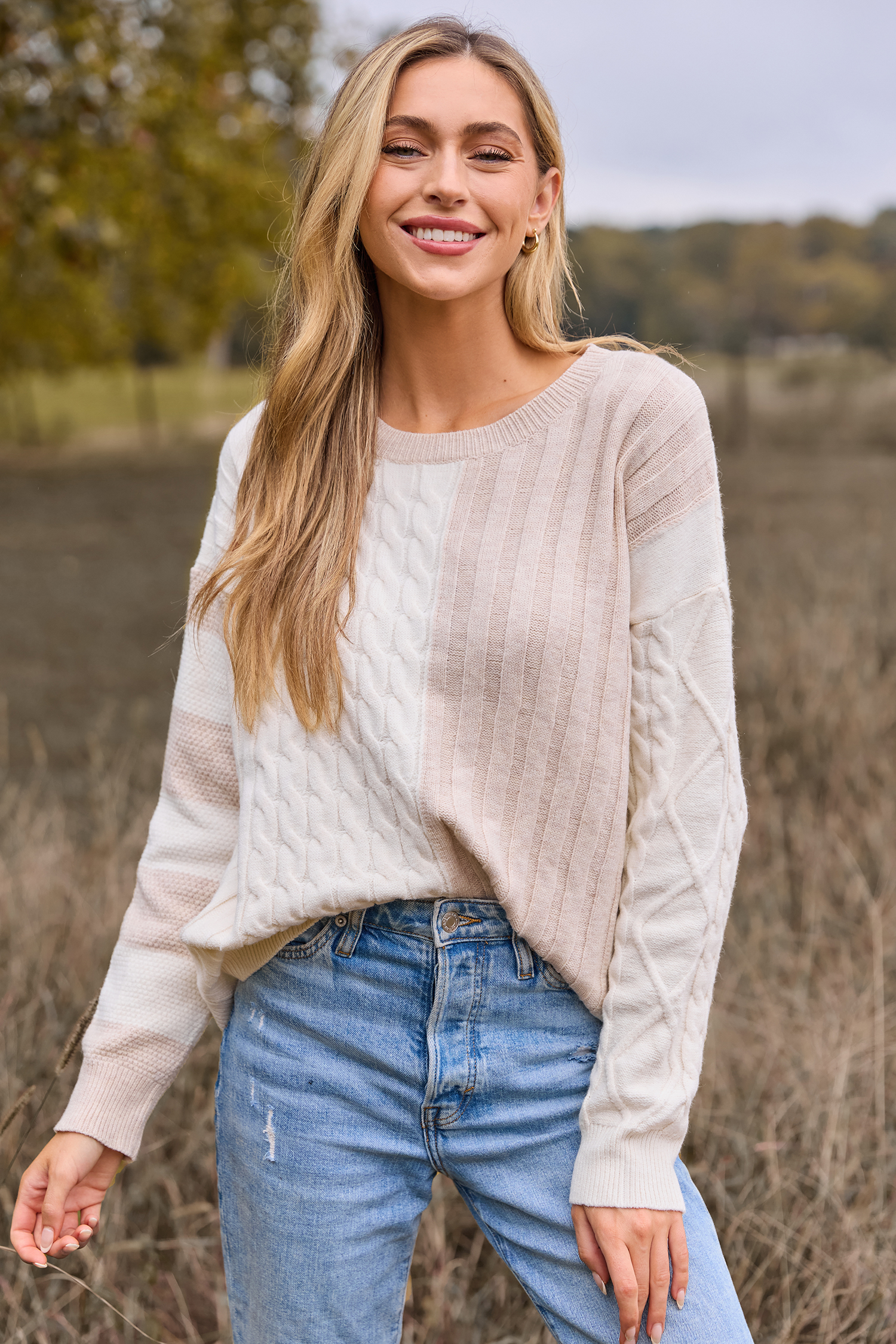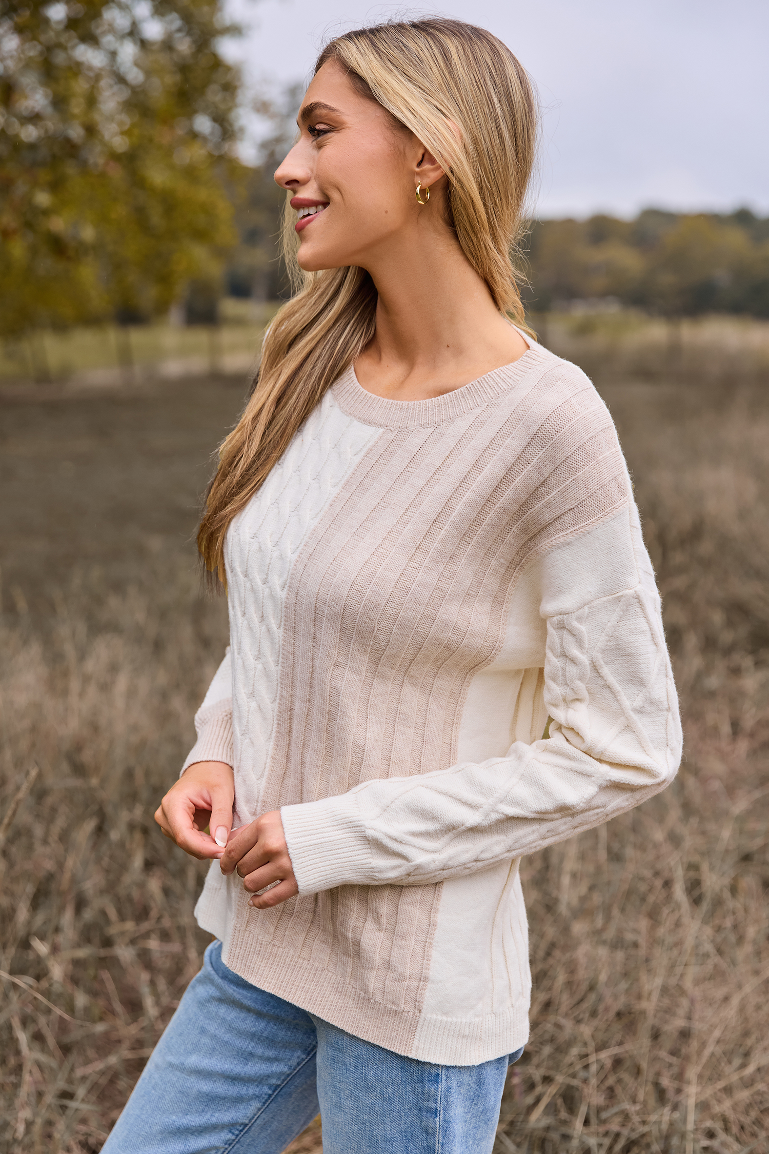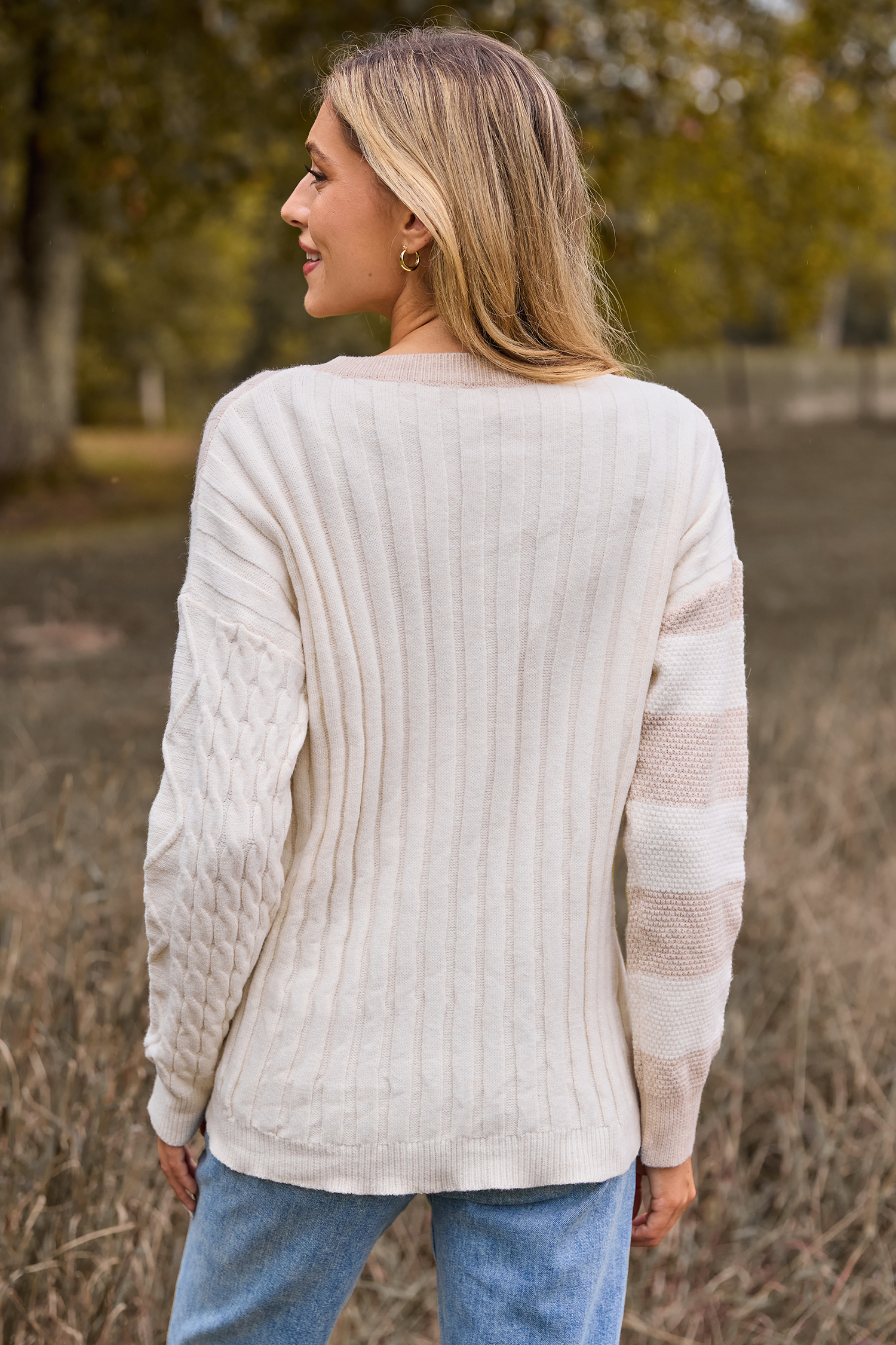 Langarmpullover mit Rundhalsausschnitt und gemischtem Muster