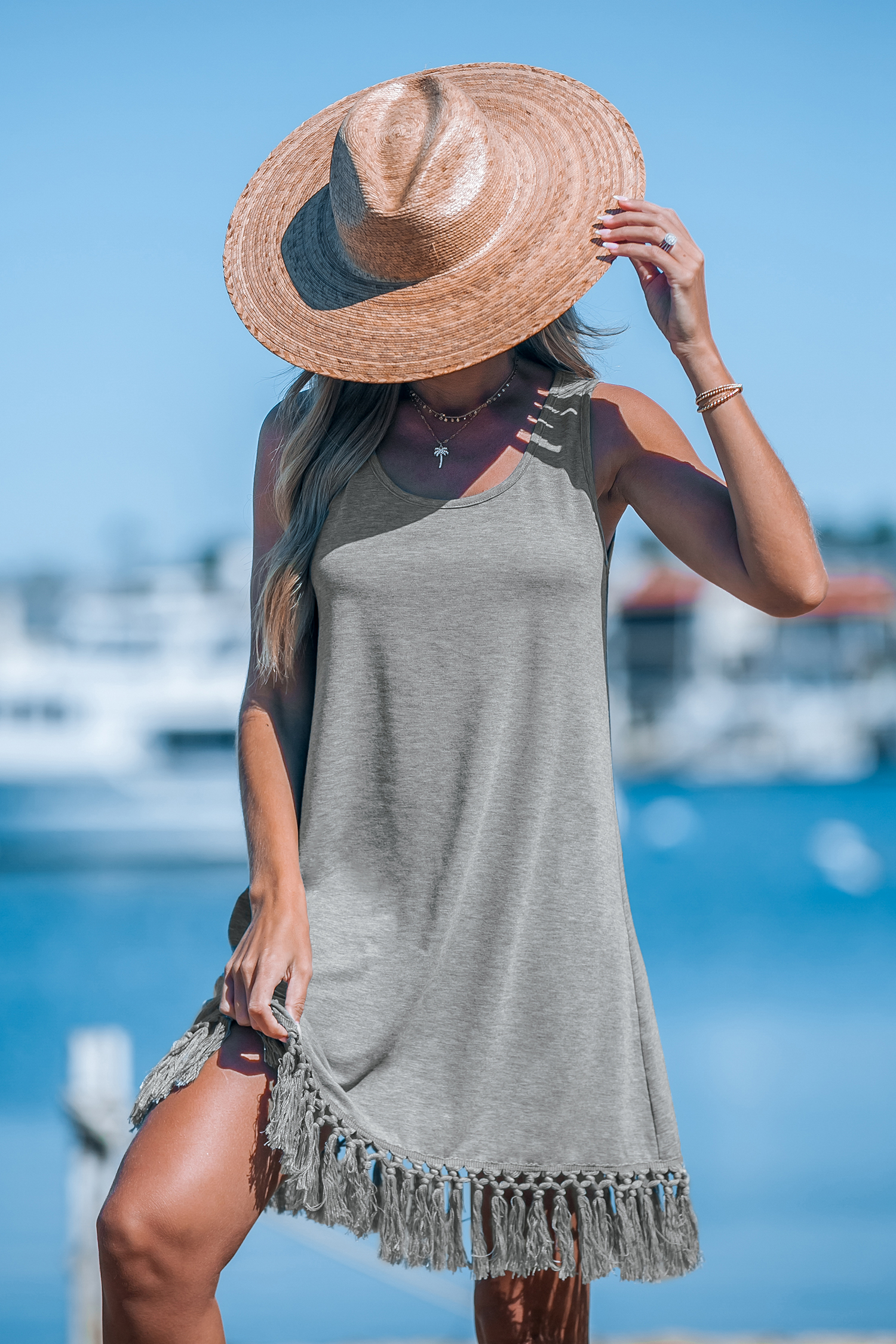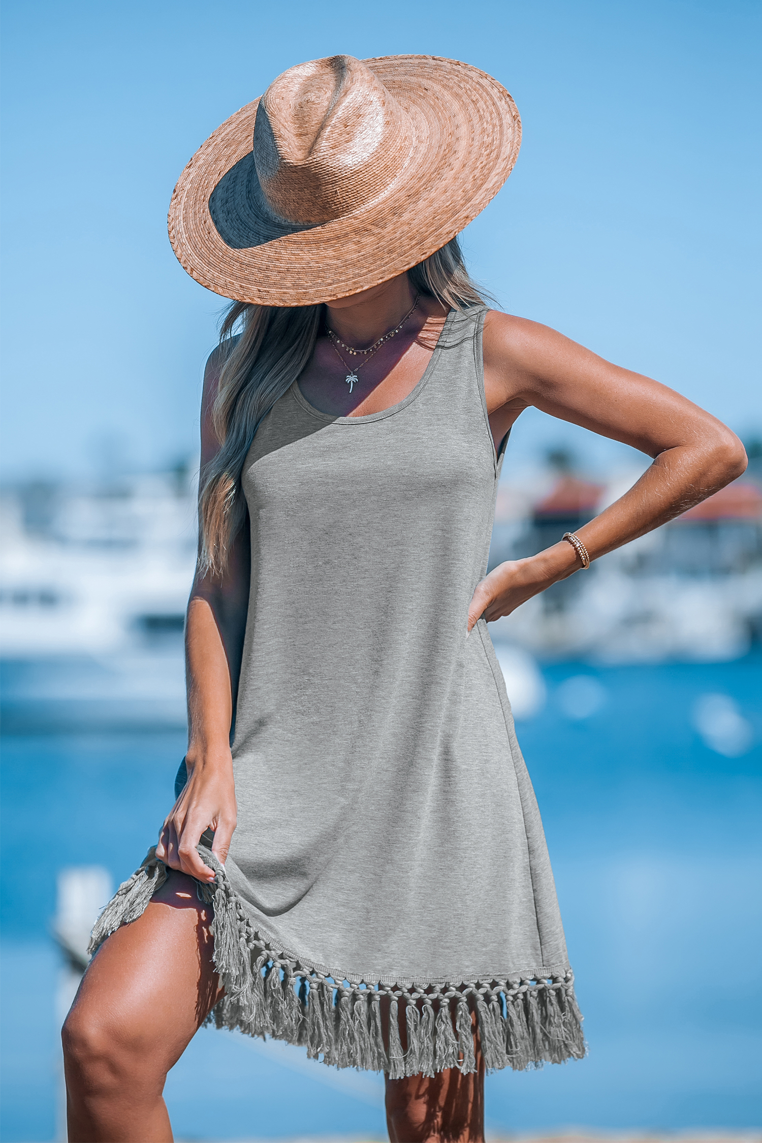 Ärmelloses Minikleid mit Rundhalsausschnitt und Quastensaum