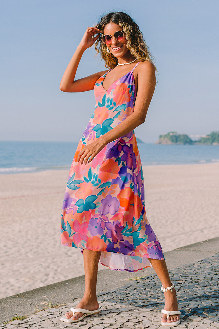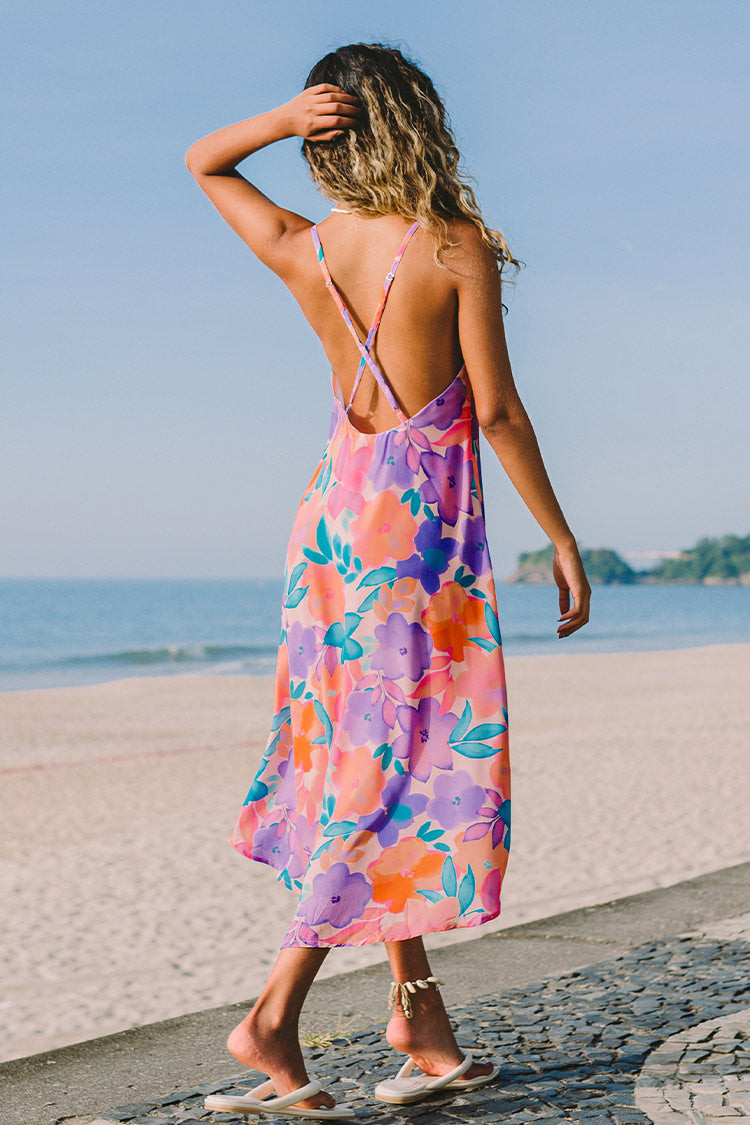 Rückenfreies florales Midikleid mit V-Ausschnitt