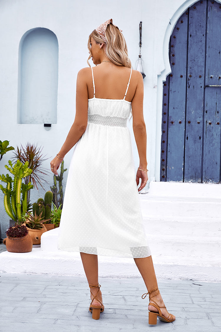 Rundhals A-förmiges Kleid mit dünnen Trägern zum Binden