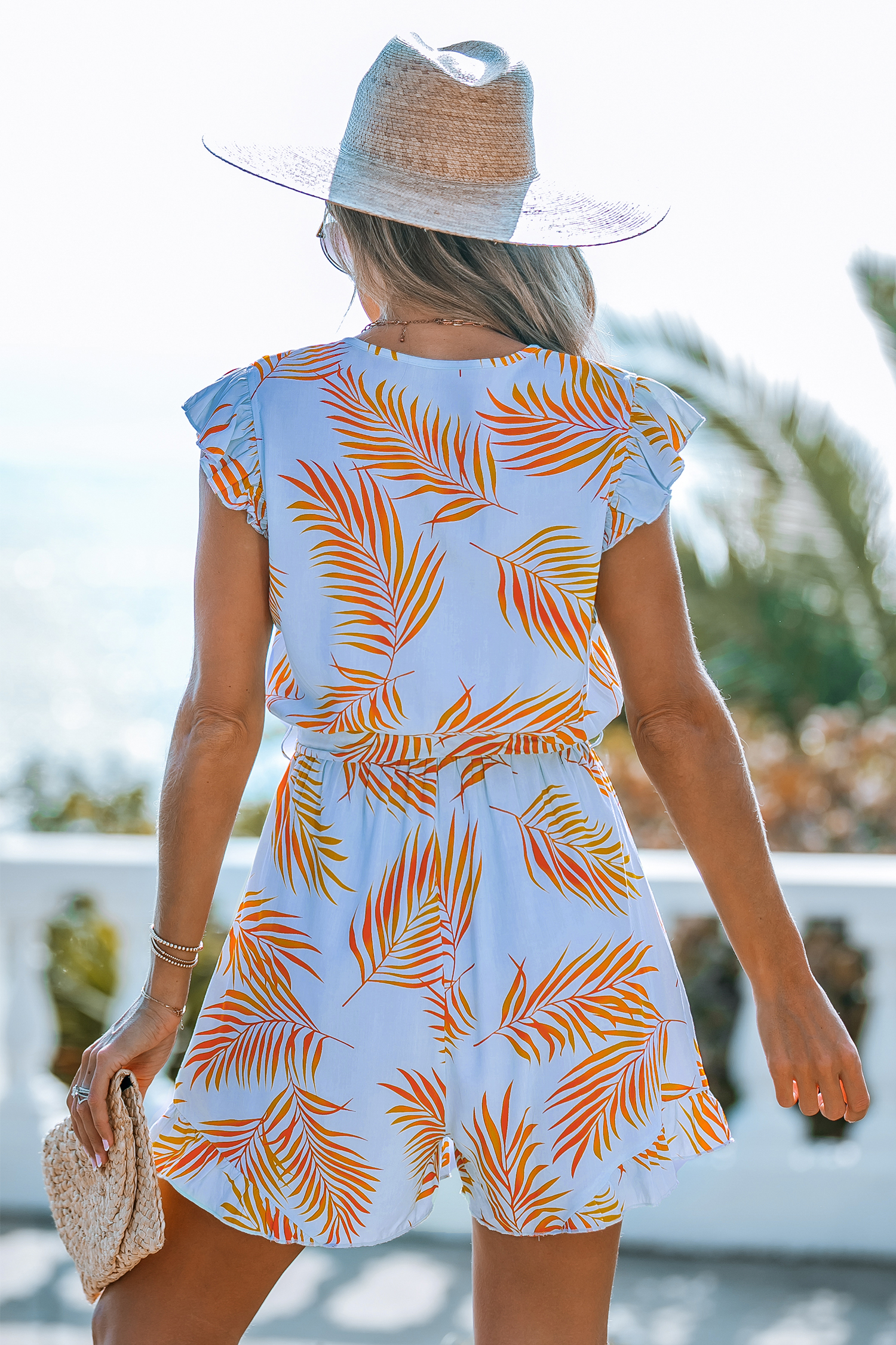 Tropischer Ärmelloser Wickel-Strampler mit Taillenband