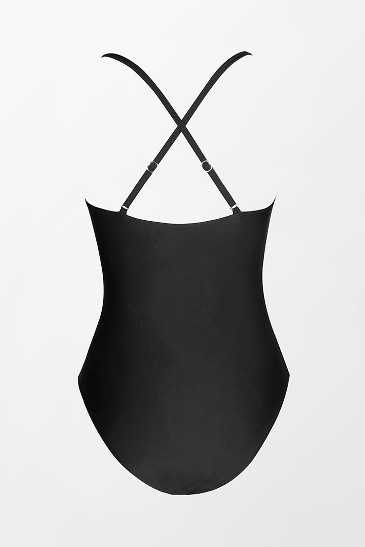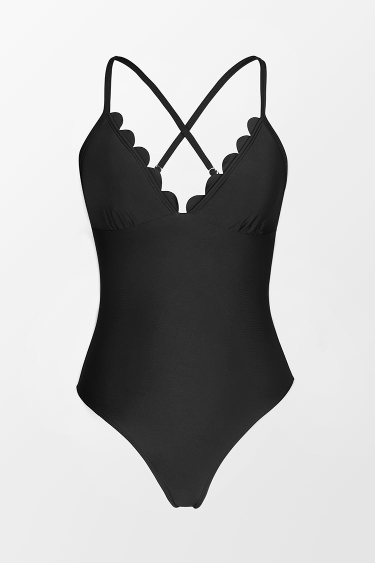 Scalloped-Badeanzug mit dünnen Tragern in Schwarz