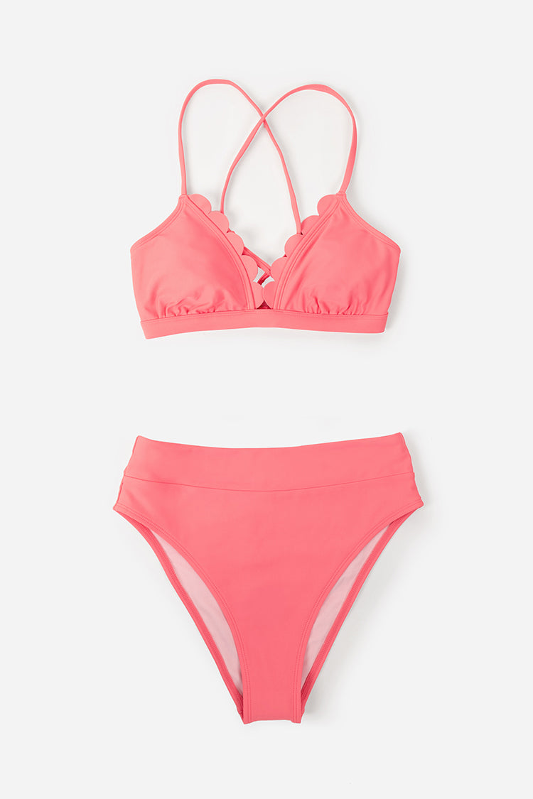 Scalloped-Bralette-Bikinioberteil und Bikinihose mit High waist