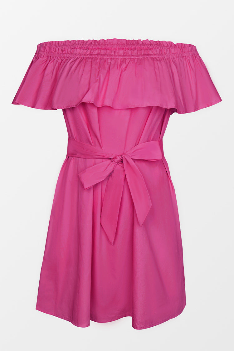 HomeSchulterfreies Kleid mit Rüschen in Rosa