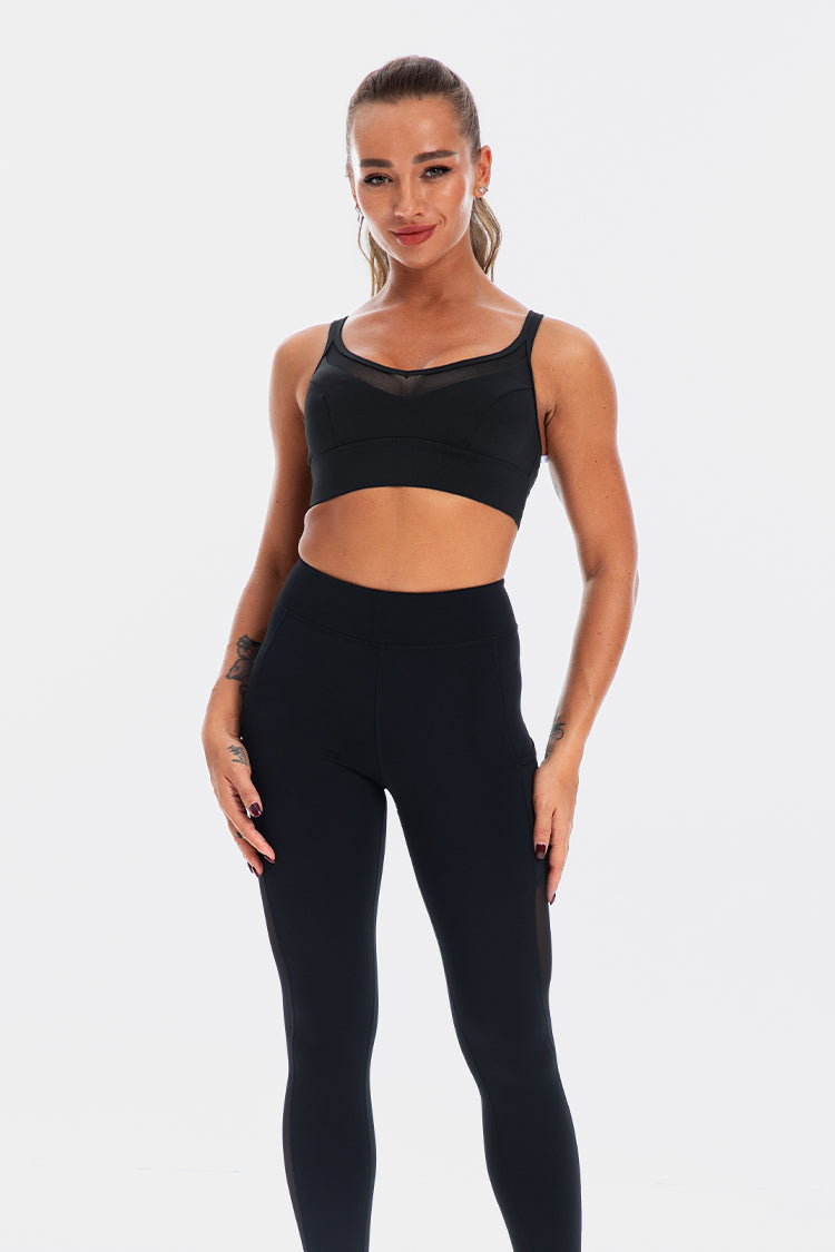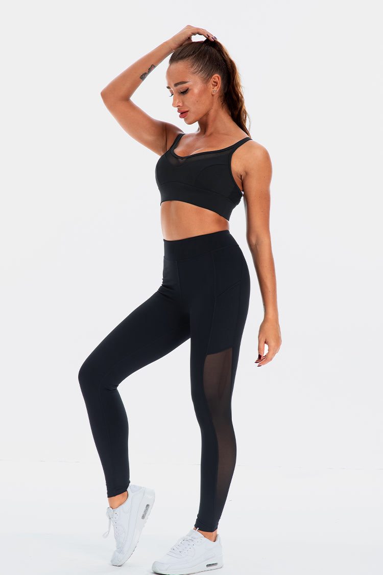 HomeSchwarz Mesh Sport-BHs High Waist Leggings Activewear Set