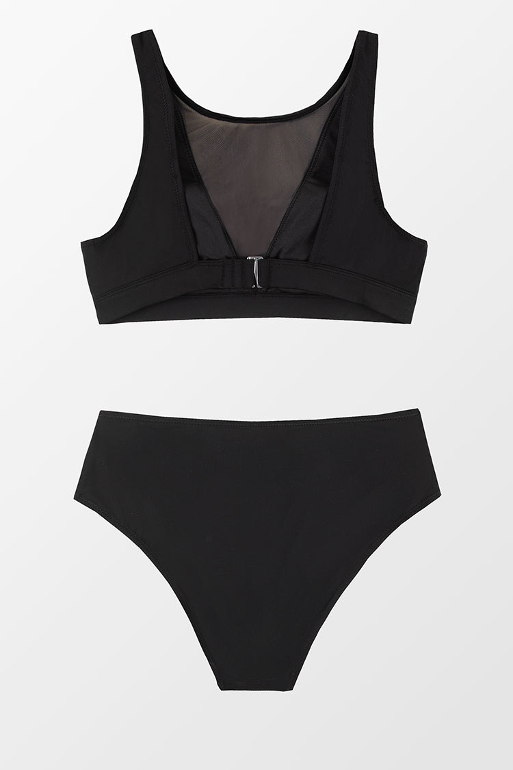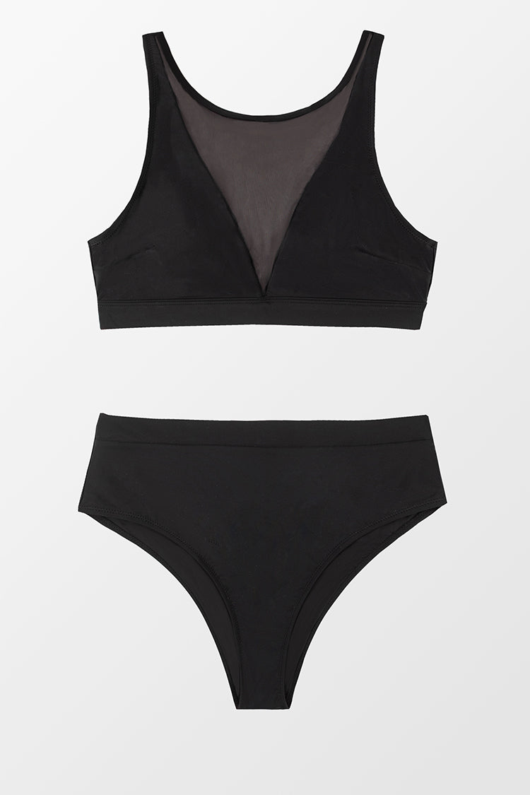 Schwarzes Bikini-Set aus Mesh High Waist