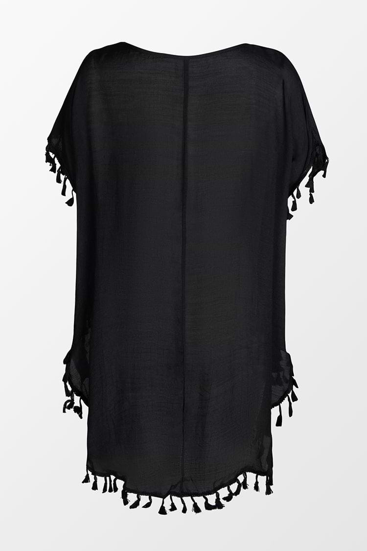 HomeSchwarzes Cover-Up mit quadratischem Ausschnitt und Quasten