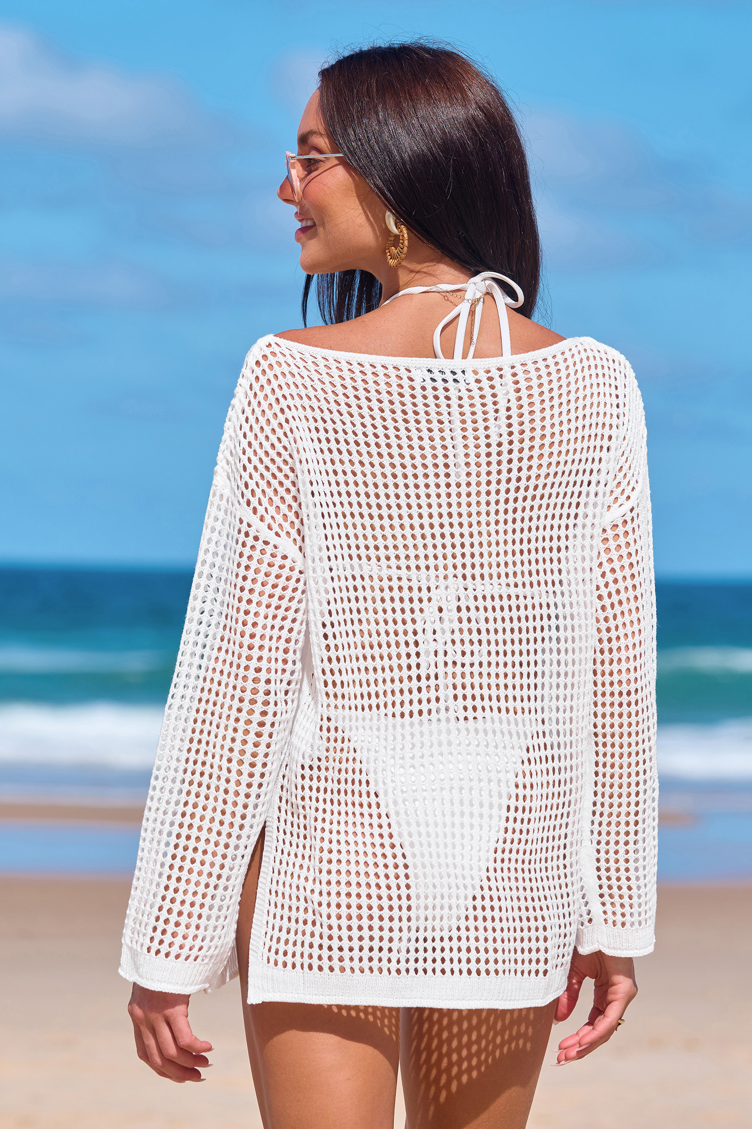 Beiges Langarm-Strick-Strandtop
