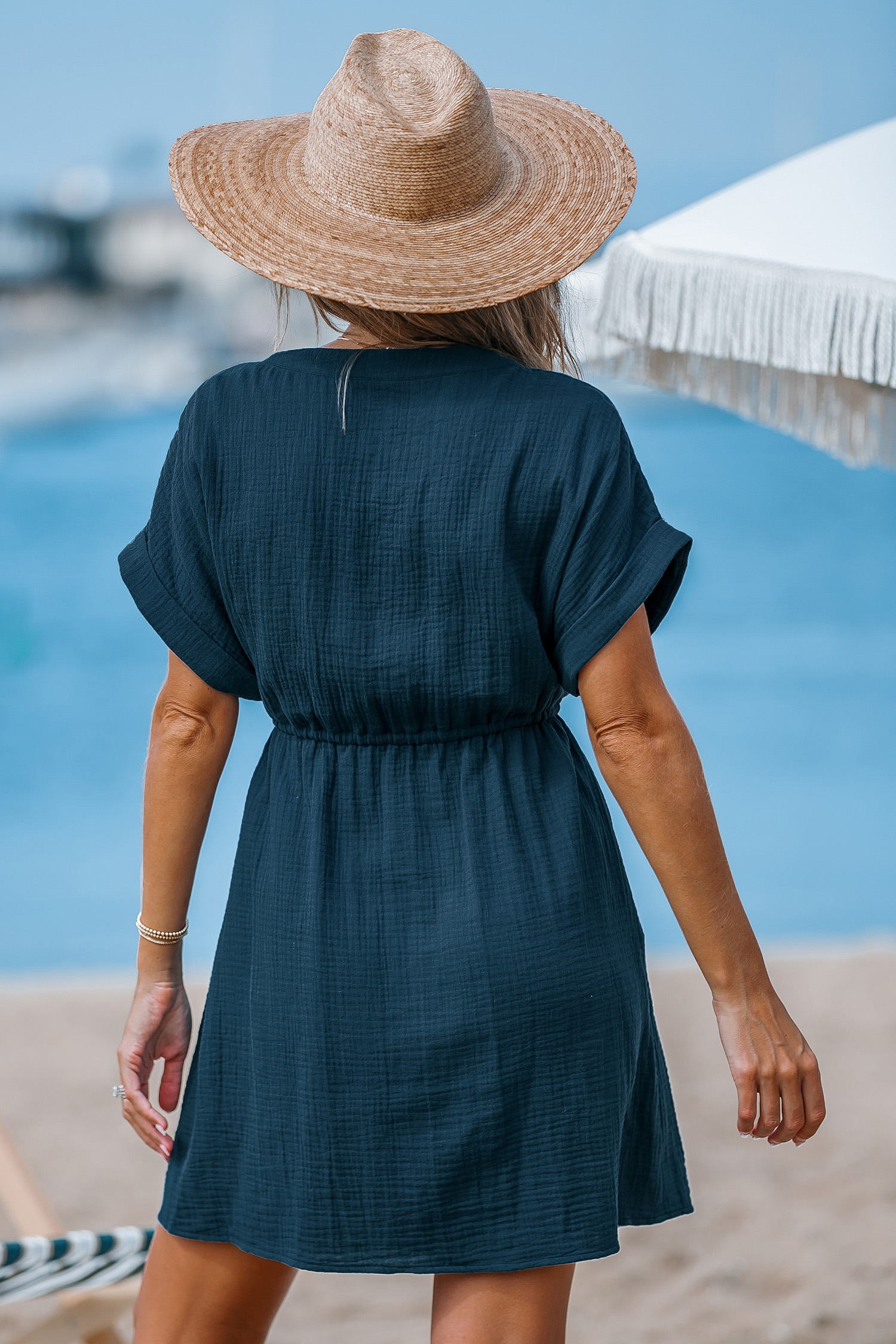 Seersucker-Minikleid mit Knöpfen