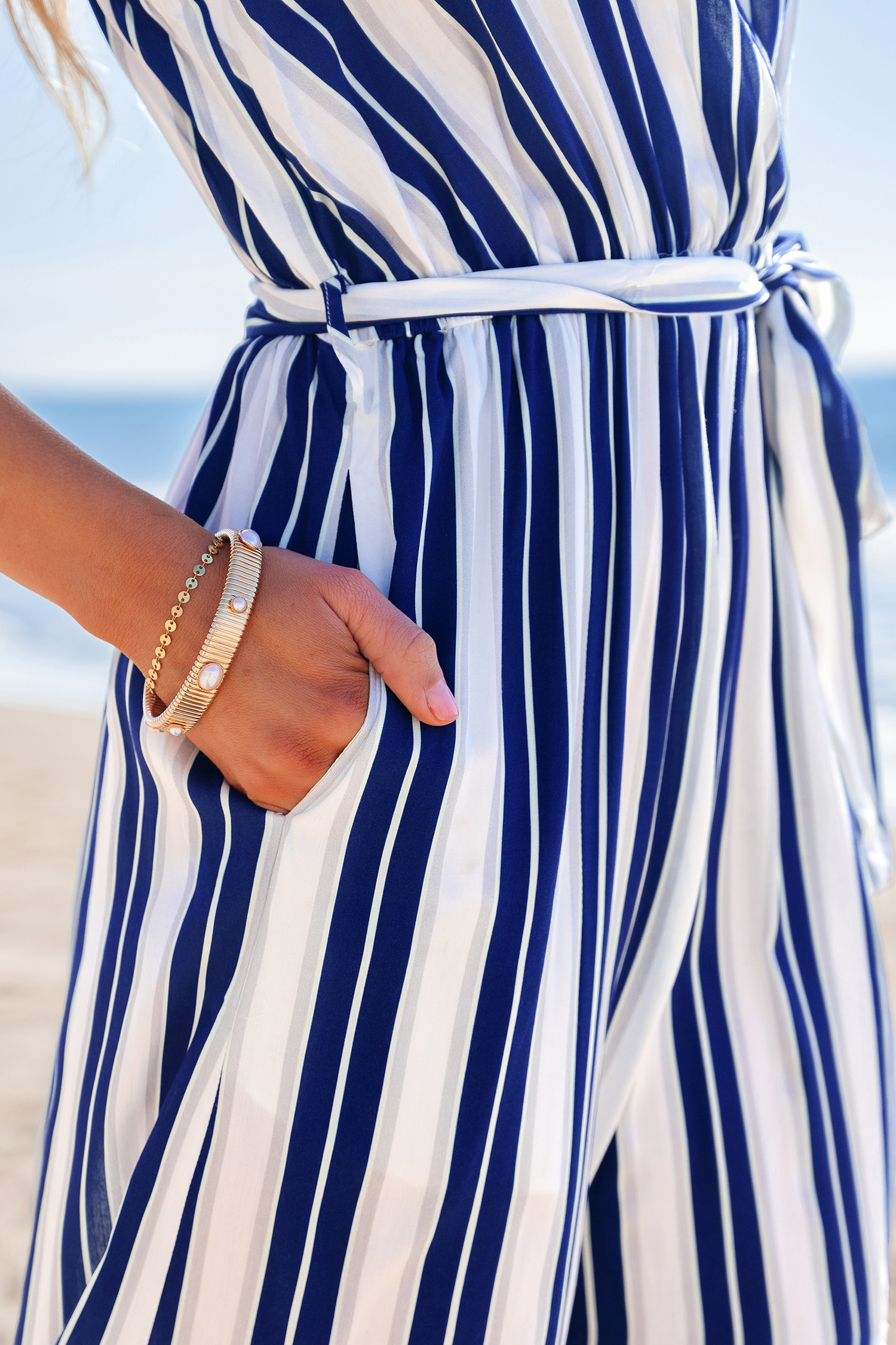 HomeGestreifter Wickel-Jumpsuit mit Seitenschlitz