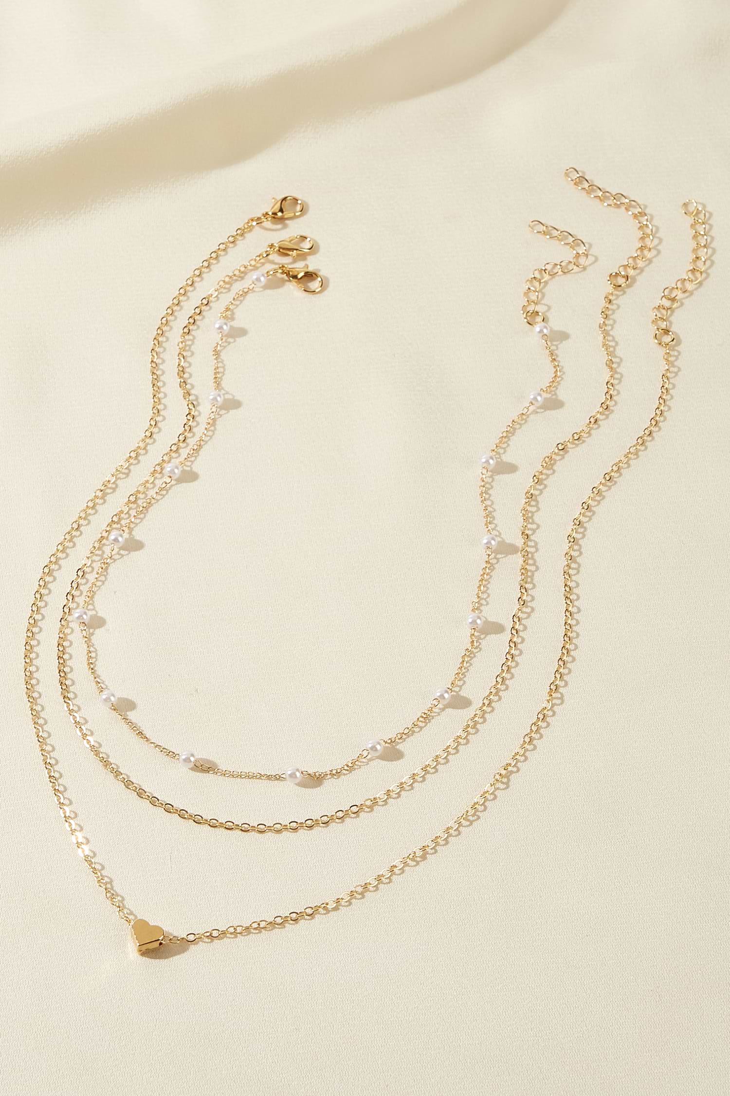 Das goldfarbene Halsketten-Set verleiht sofortigen Glanz mit einem verspielten Twist! Mit verschiedenen Ketten und zarten Kunstperlen lässt es sich perfekt kombinieren oder solo tragen für einen mühelos schicken Look.