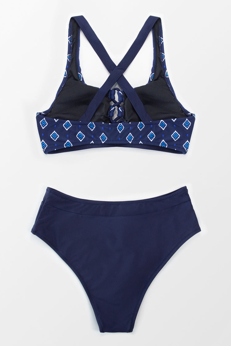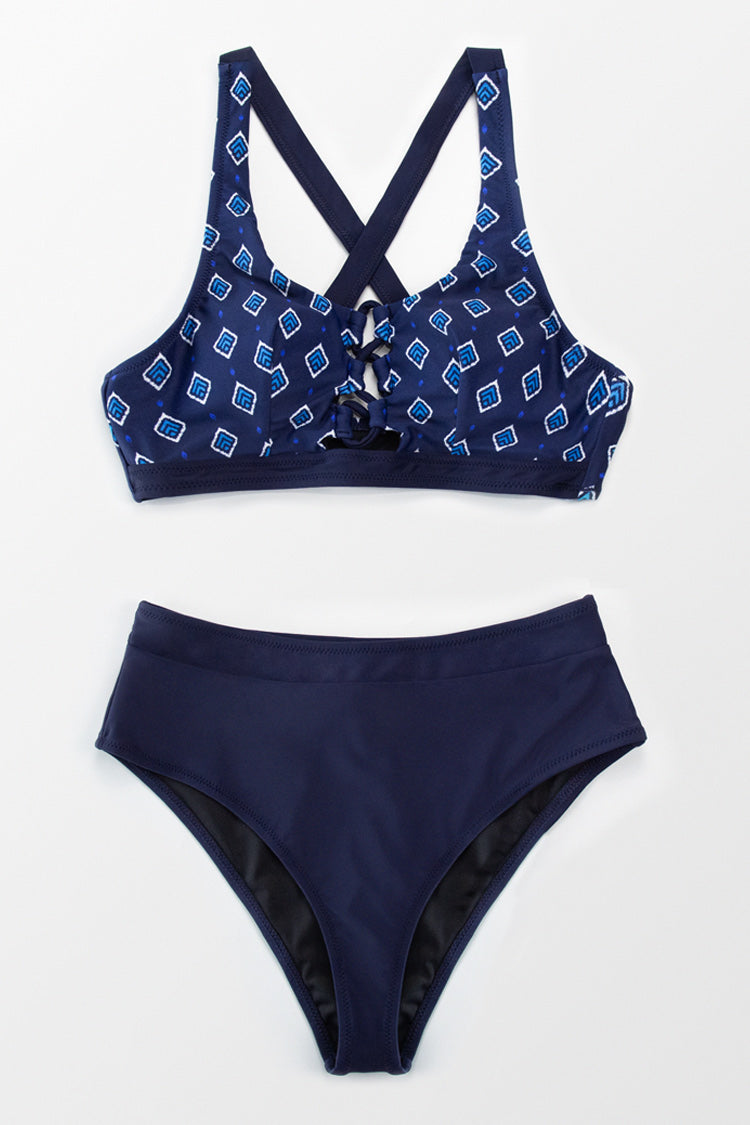 Bralette mit breiten Trägern und Bikini-Set mit hoher Taille in Navy