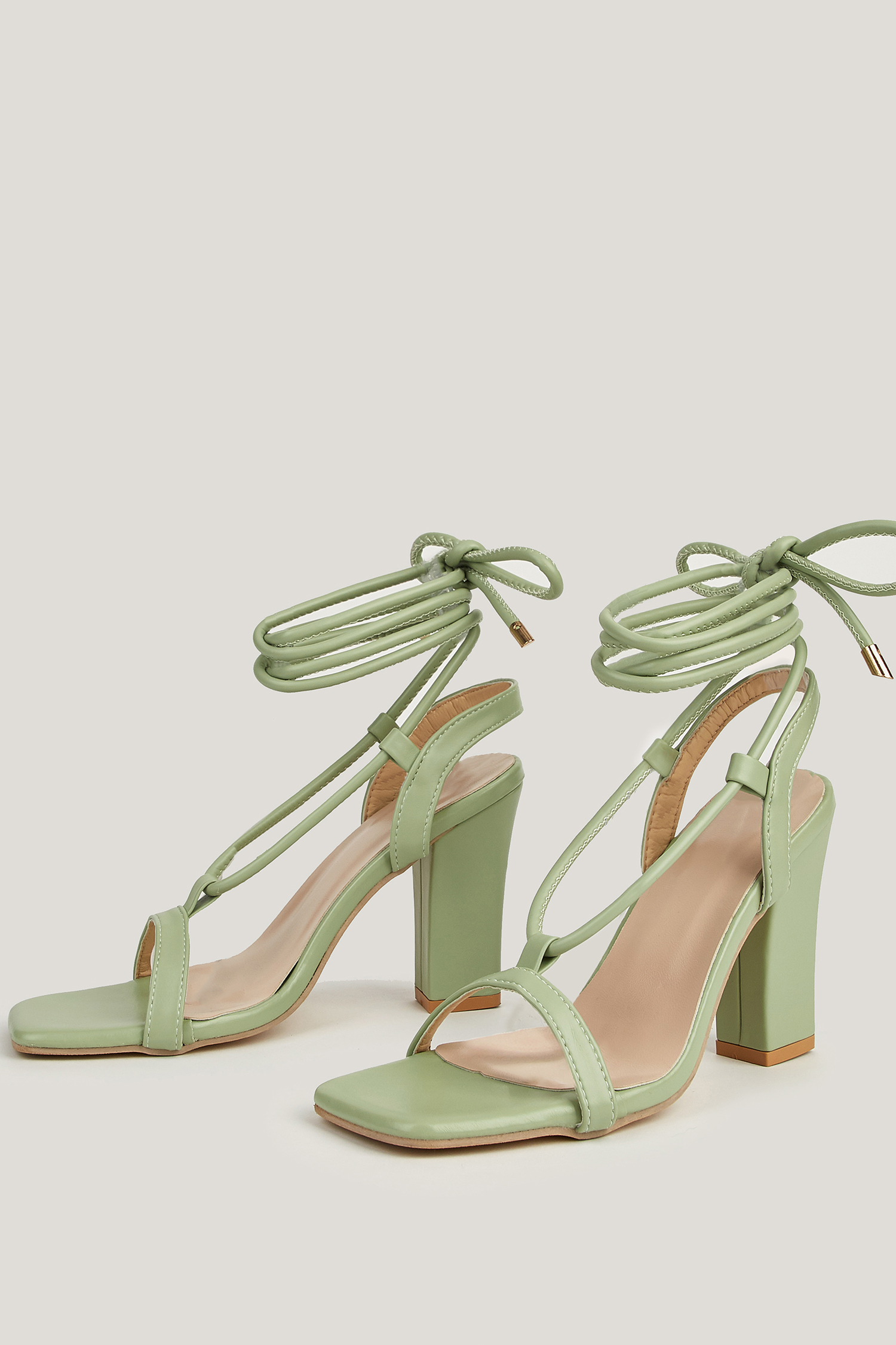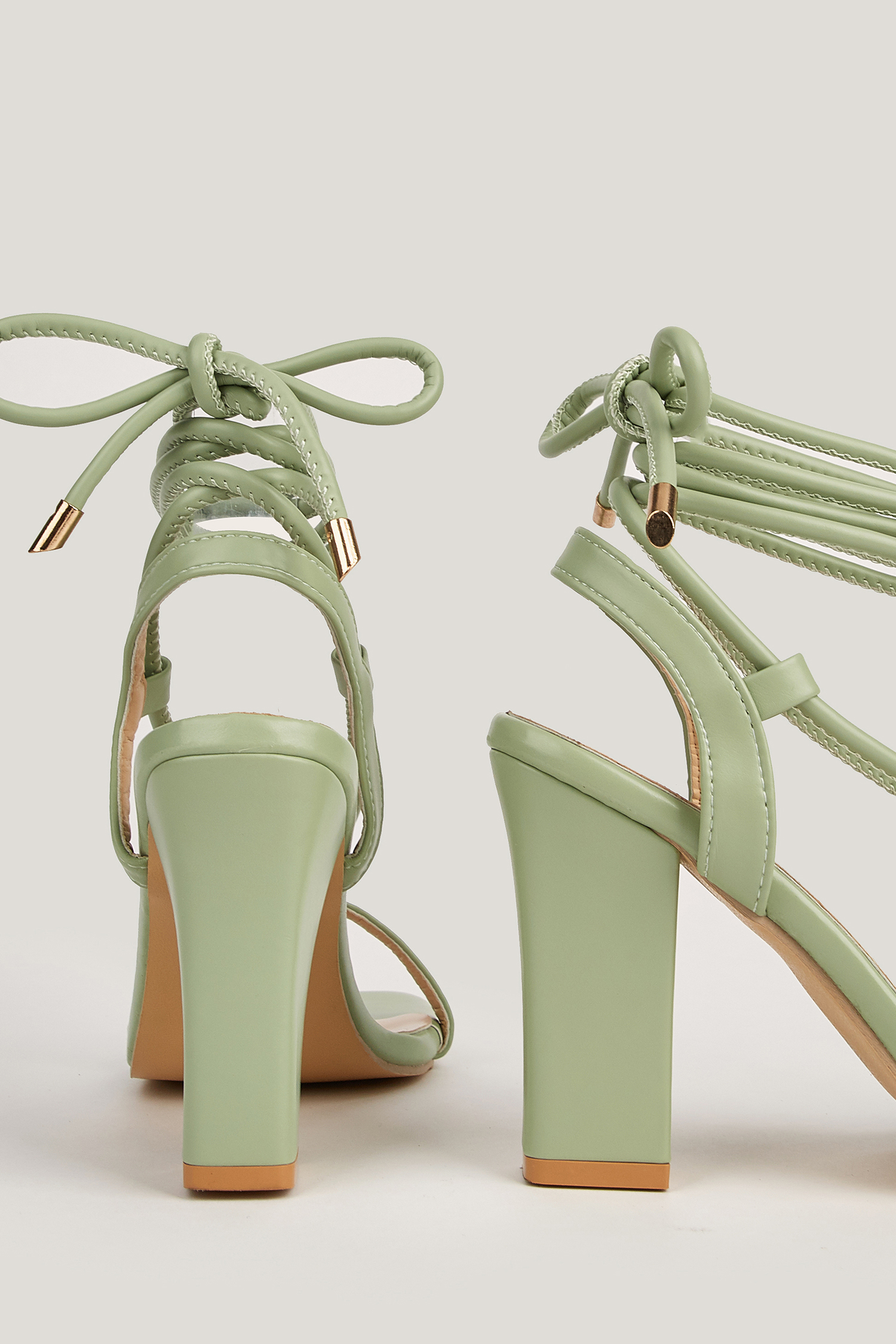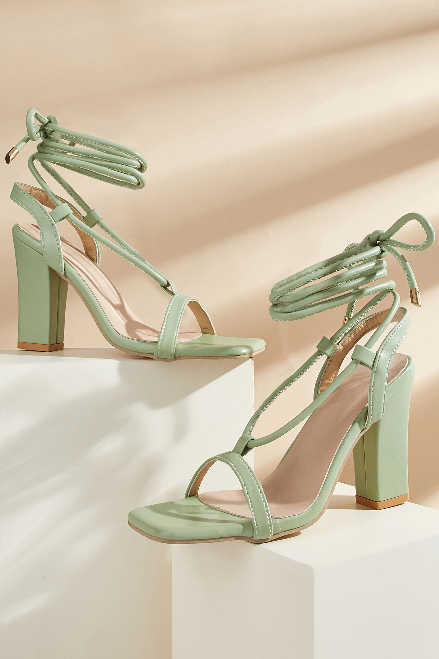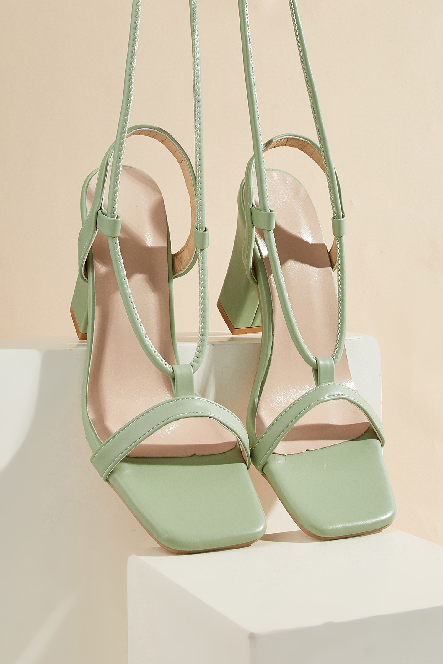 HomeBlockabsatz-Sandalen mit quadratischer Spitze und Wickeloptik