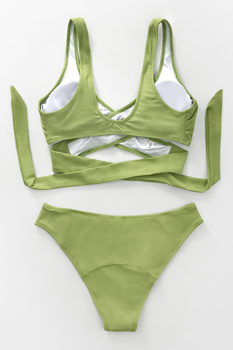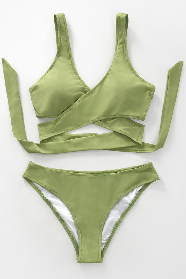 Stilvoller grüner Wickelbikini