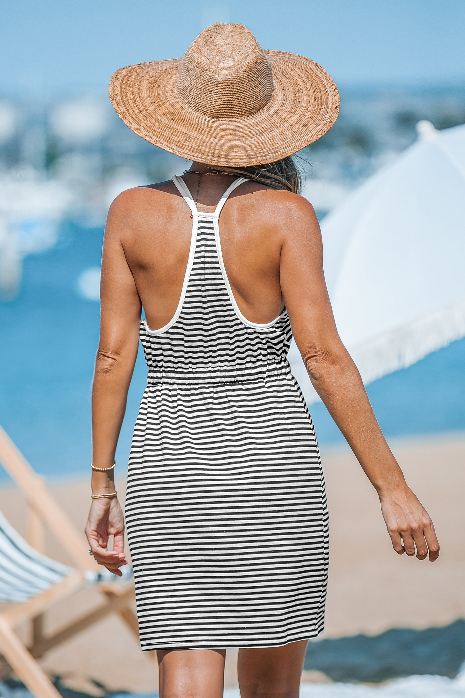 Gestreiftes Minikleid mit Tunnelzug und Beinschlitz