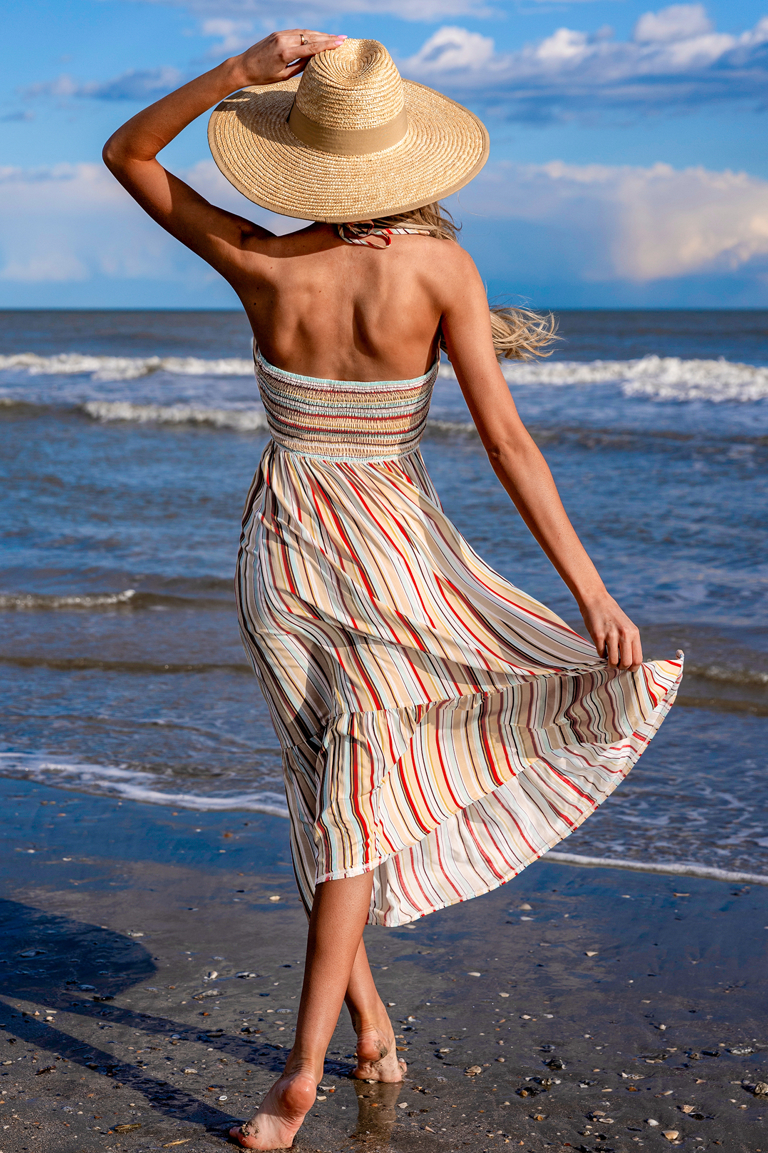 Gestreiftes ärmelloses Maxikleid mit Rundhalsausschnitt