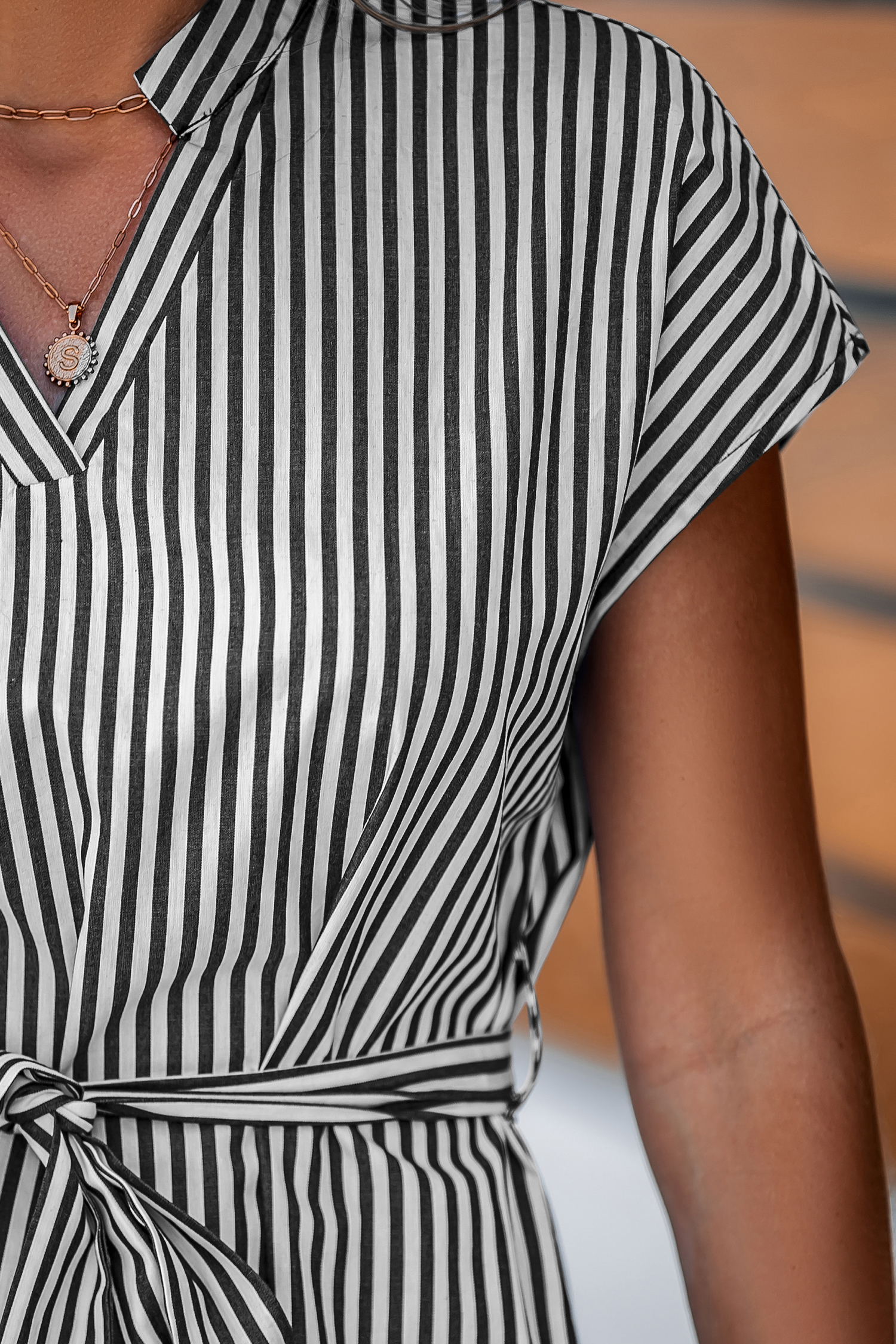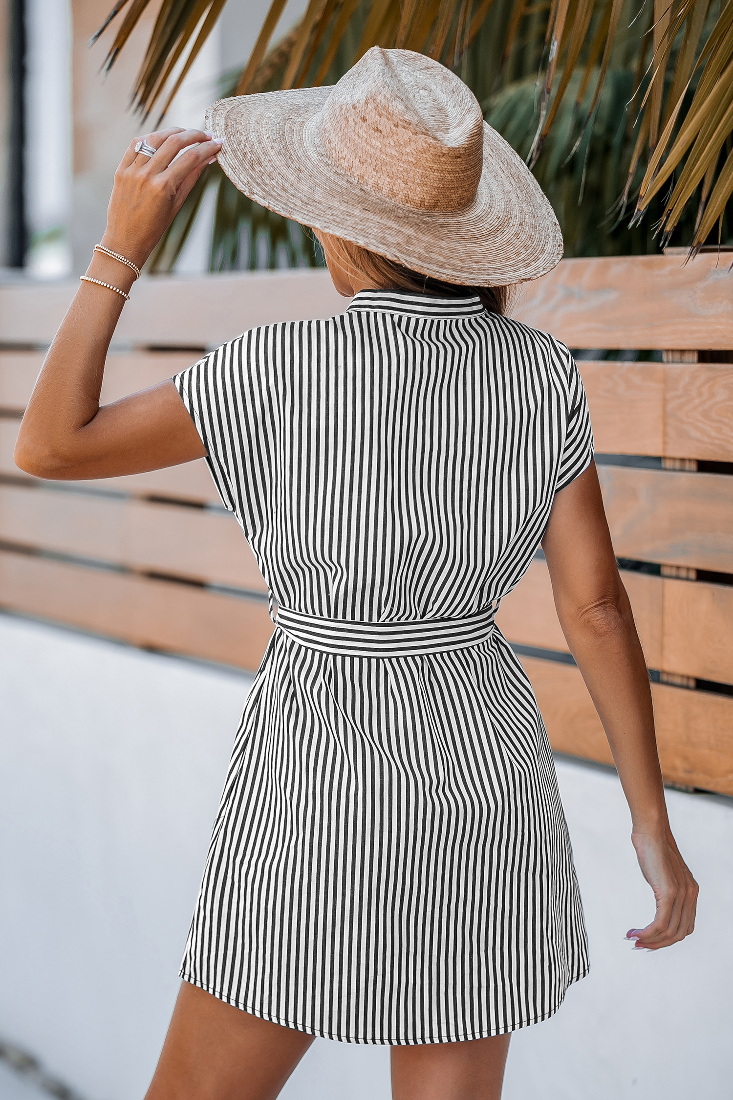 Gestreiftes Mini-Baumwollkleid mit kurzen Ärmeln und Stehkragen