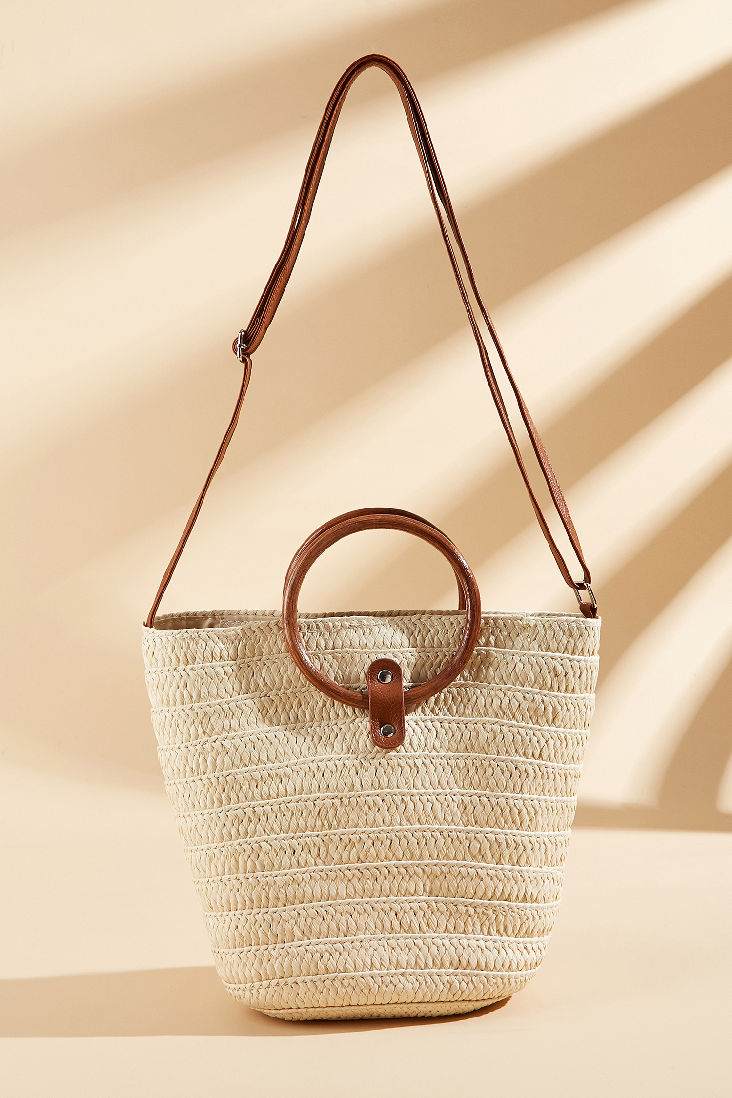 HomeSommerliche Strohtasche mit Crossbody-Gurt
