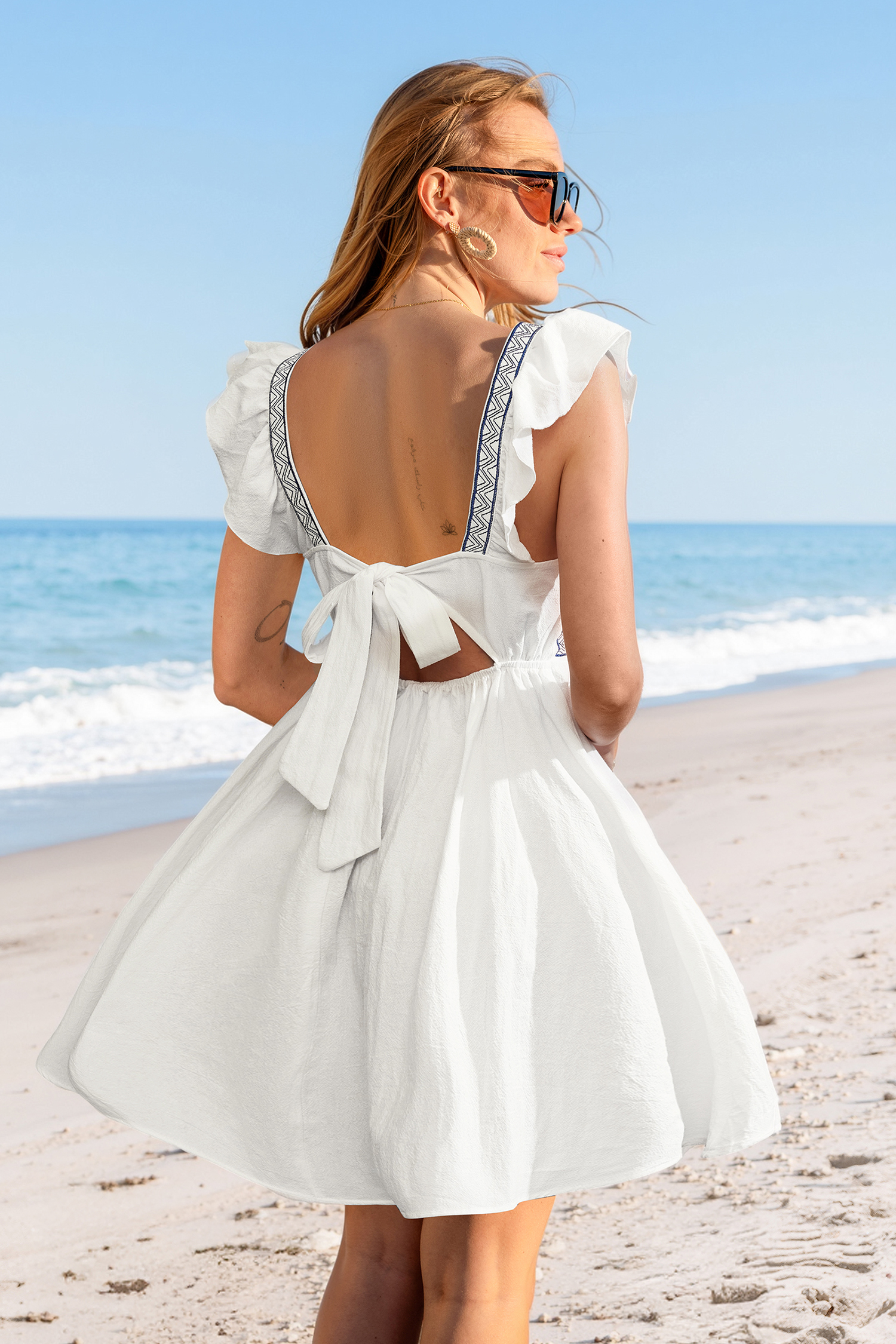 Florales Baumwoll-Minikleid mit Stickerei und Flatterärmeln