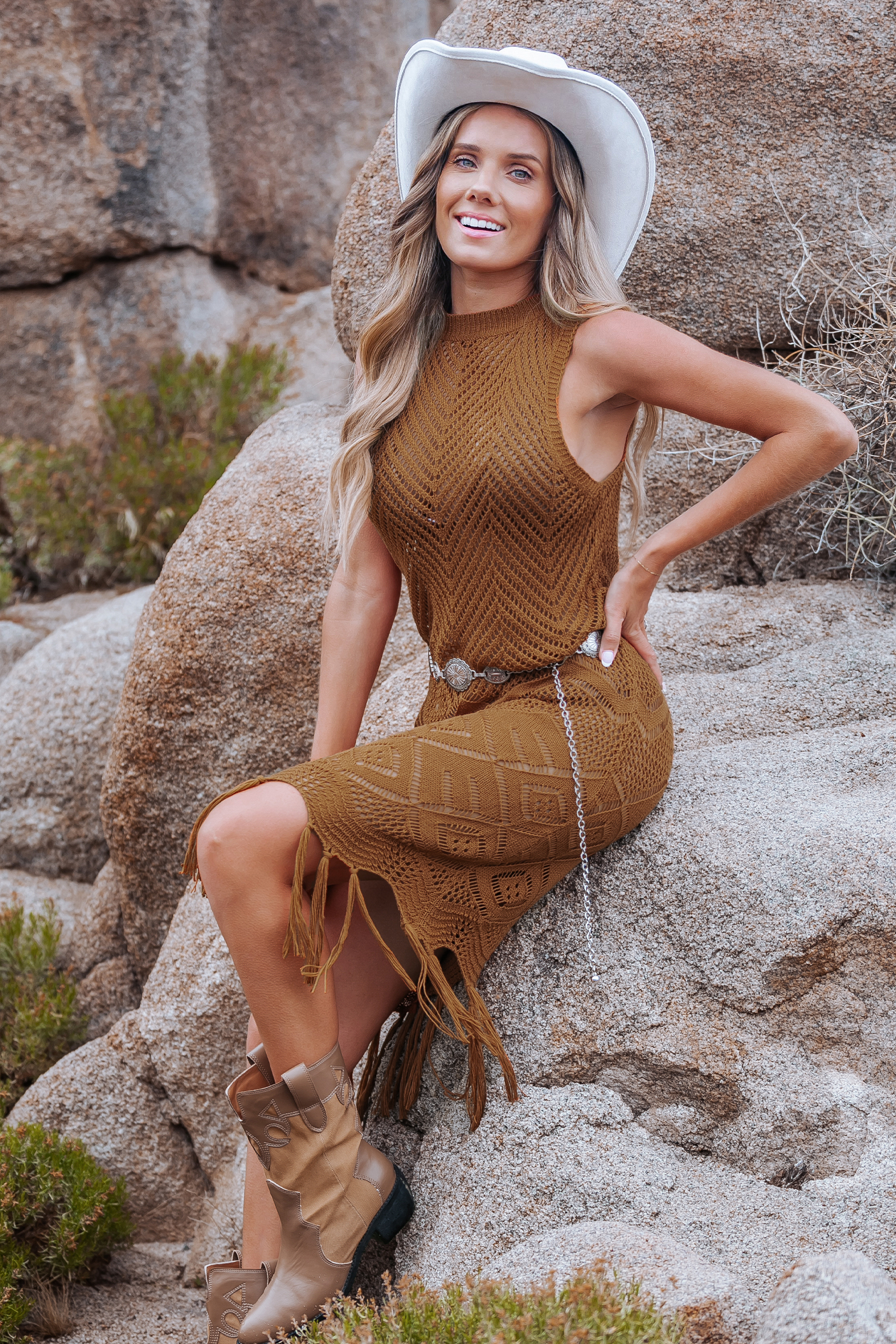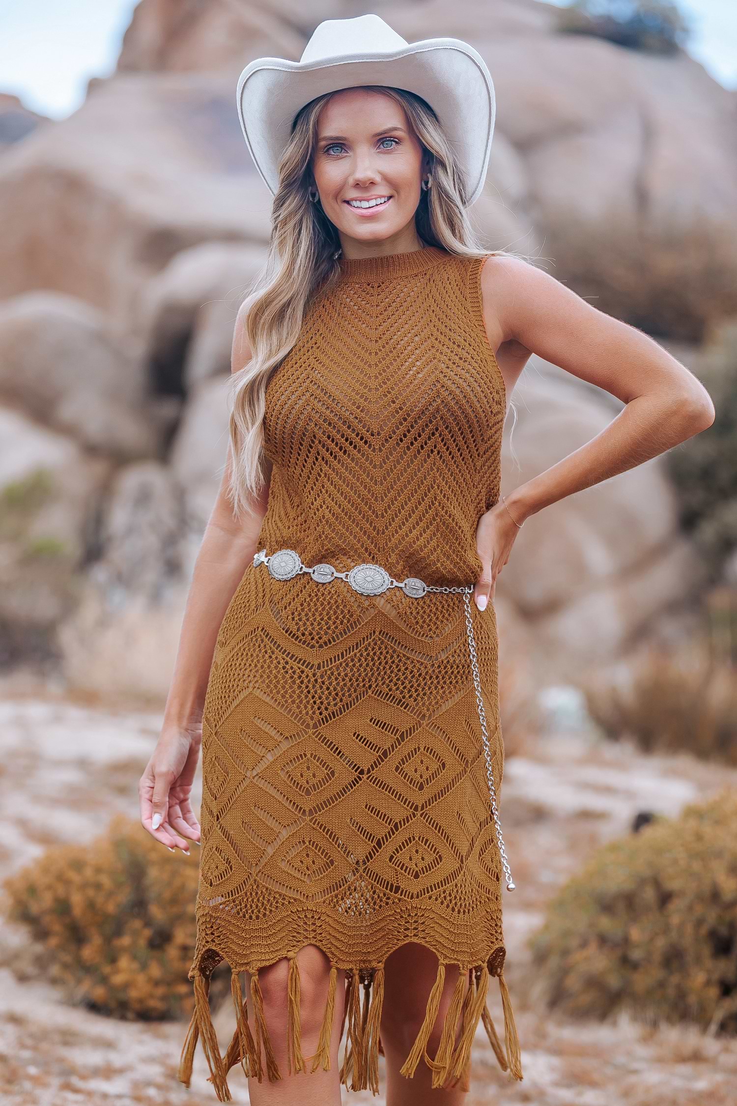 Reine Baumwolle Ärmelloses Mini-Häkelkleid mit Quastensaum
