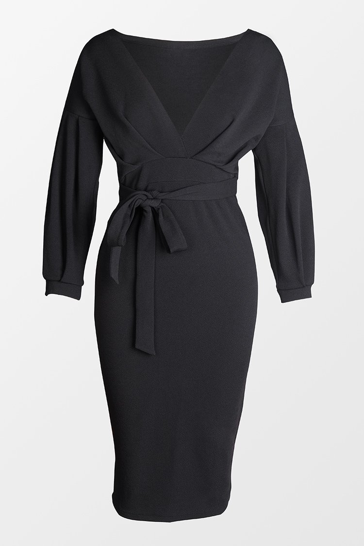 HomeTeelänge-Kleid mit V-Ausschnitt und Taillenband