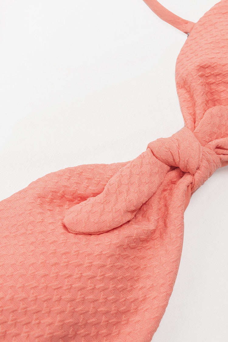 Texturiertes Bandeau-Bikinioberteil mit Schnürung vorne