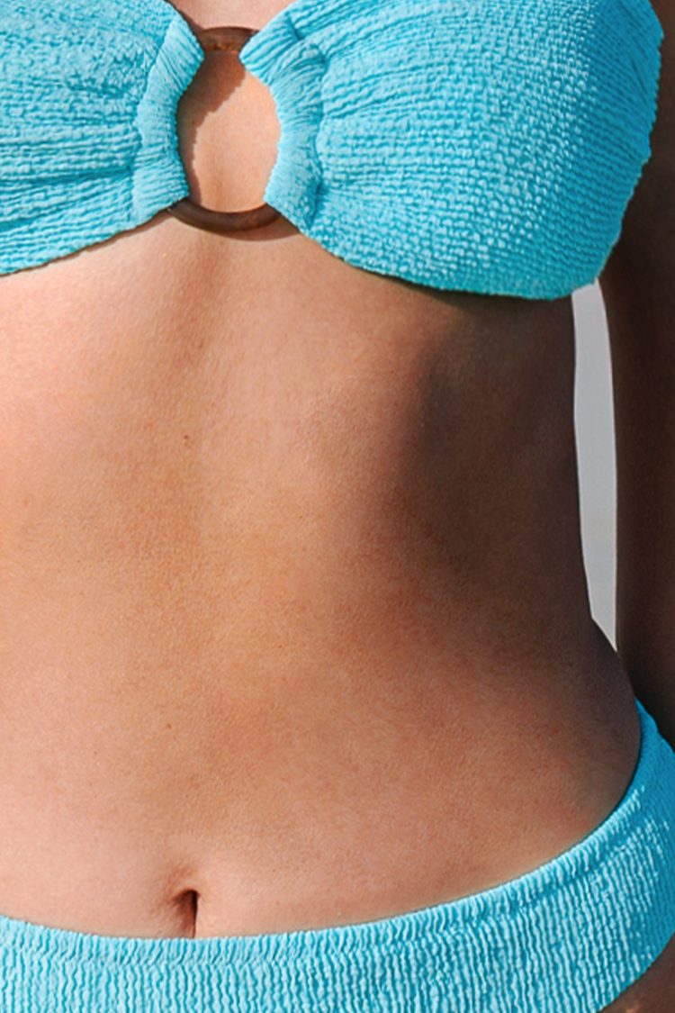 Texturiertes O-Ring Bandeau und gebänderter Bikini Set