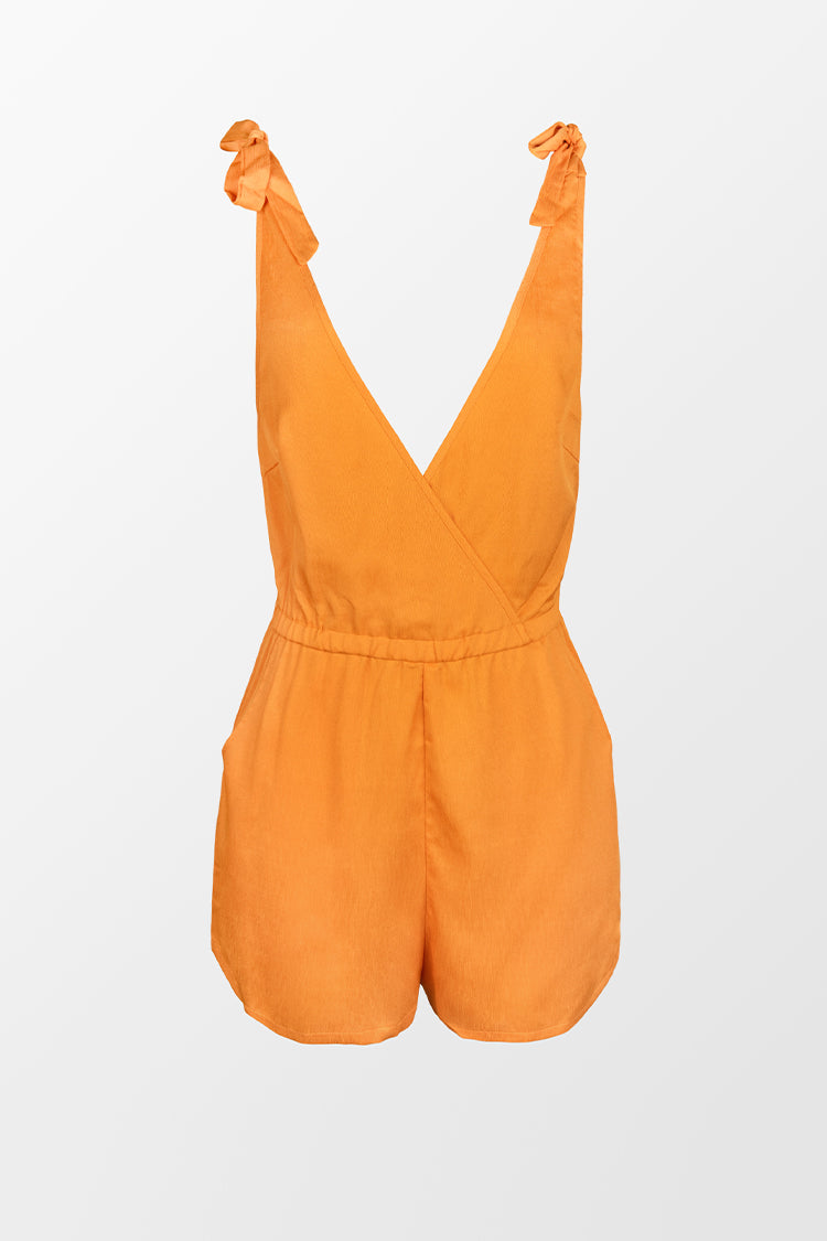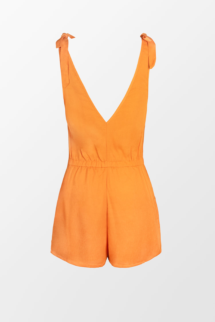 Tie Shoulder Strampler mit tiefem Ausschnitt in Orange
