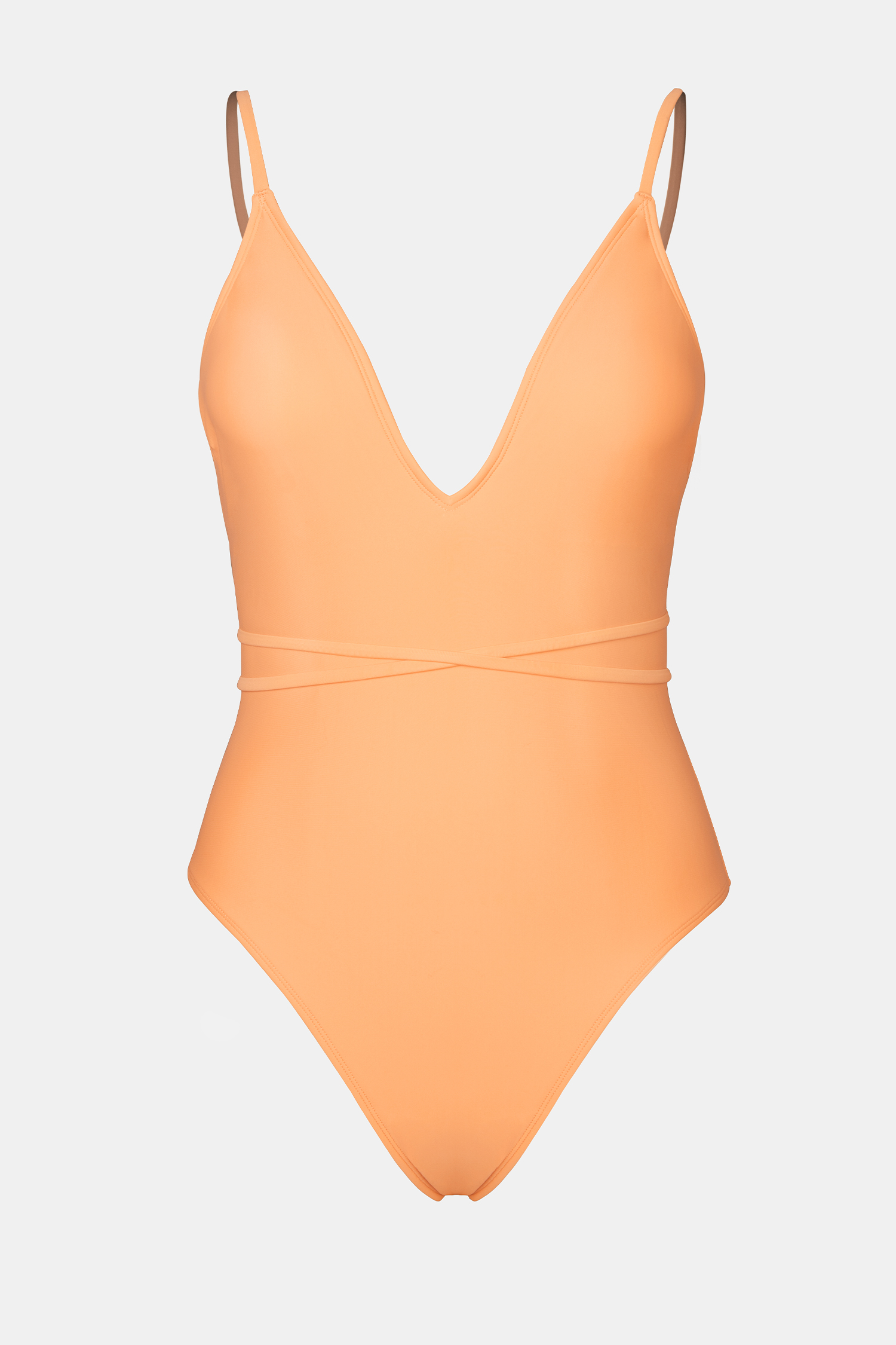 Tiefer V-Ausschnitt Badeanzug mit Rückbindung