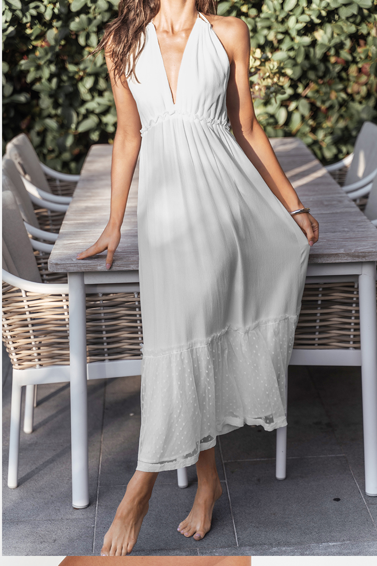 Tiefer V-Ausschnitt Neckholder Weißes A-förmiges Kleid