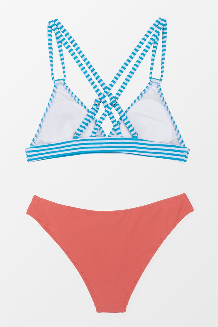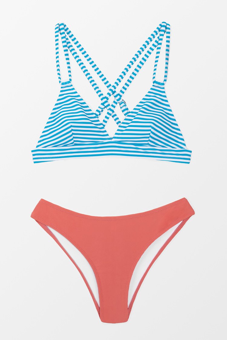 Triangel Crisscross-Bikini mit Streifen