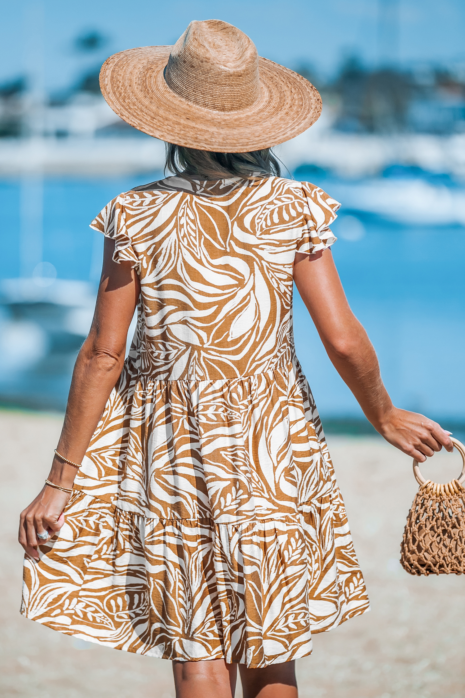 Tropisches Minikleid mit V-Ausschnitt und Flatterärmeln