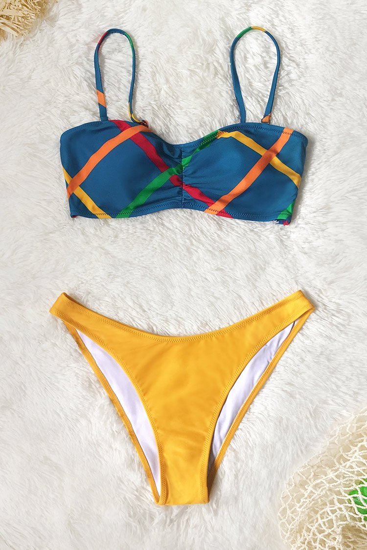 Gelbes Verstellbare Träger Bügel-Bikini-Set