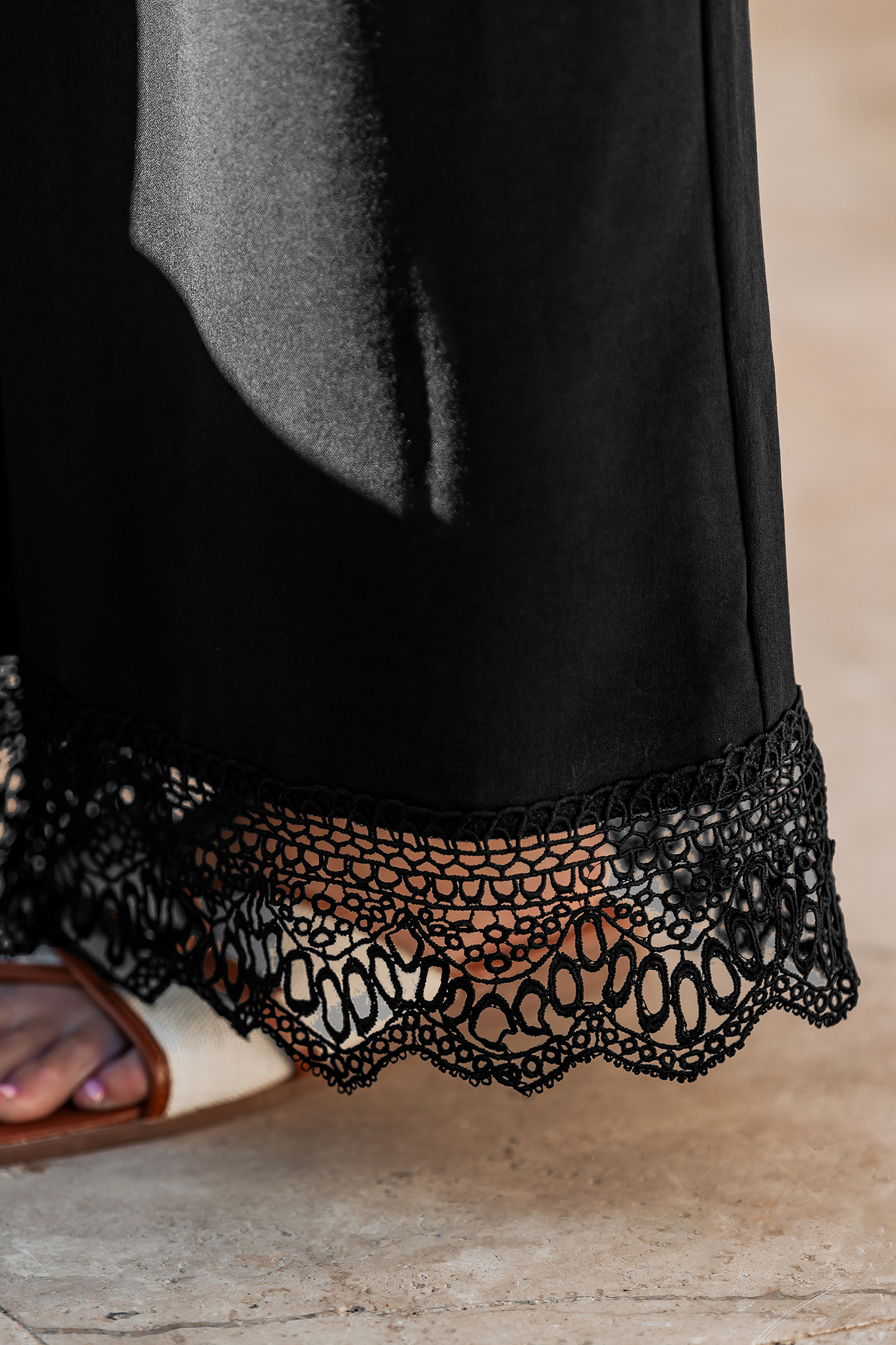 Die schwarzen Hosen sind ideal für entspannte Tage, an denen du trotzdem gut aussiehst! Der geraffte Bund und das gerade Bein sorgen für einen bequemen, gepflegten Look, der dich für alles bereit macht.