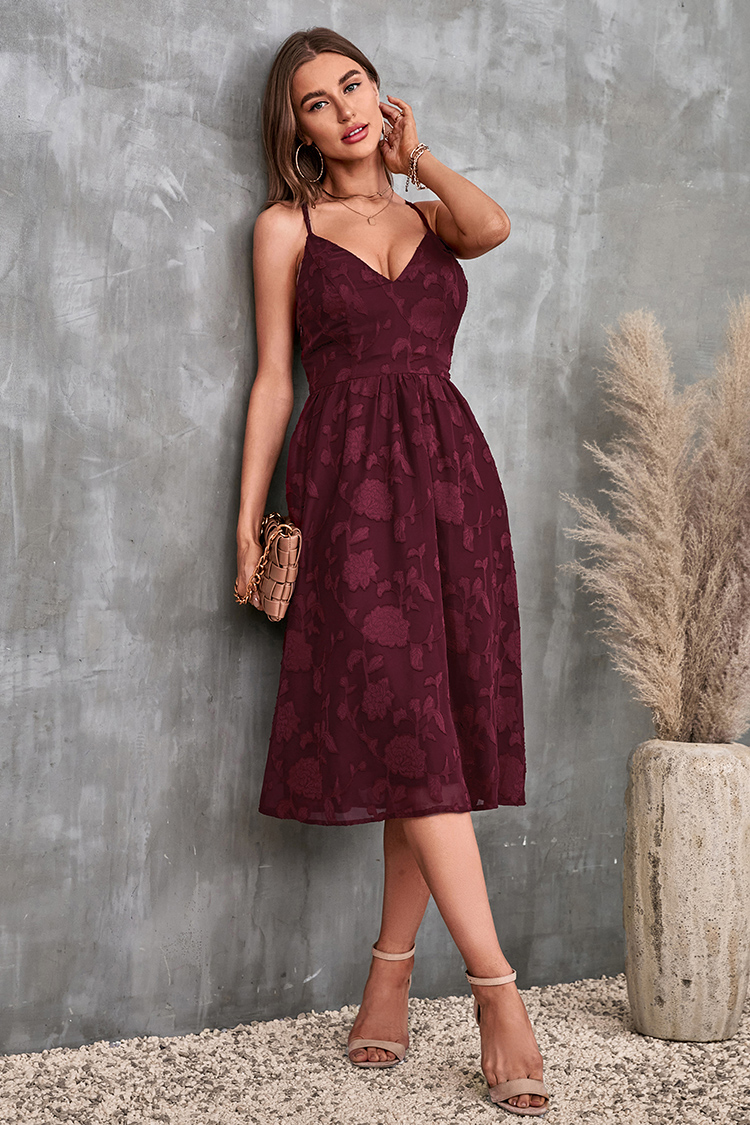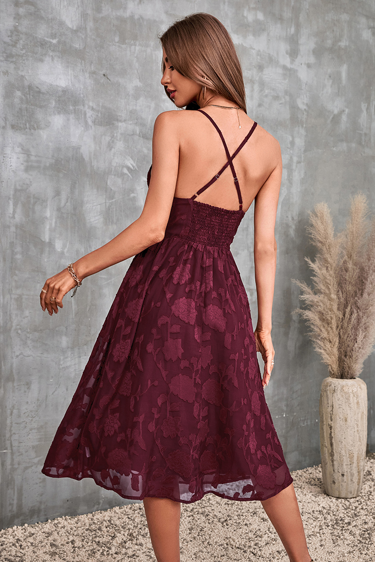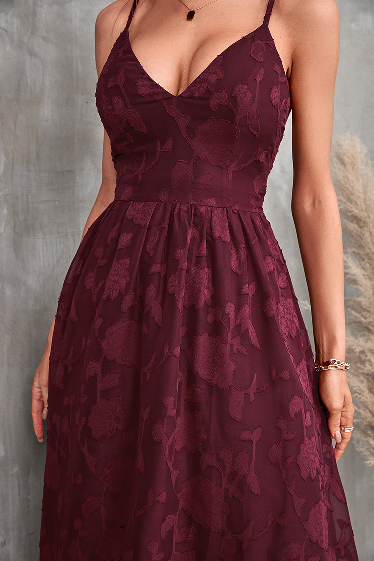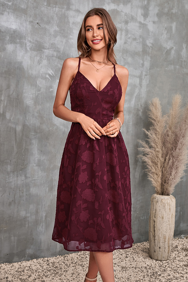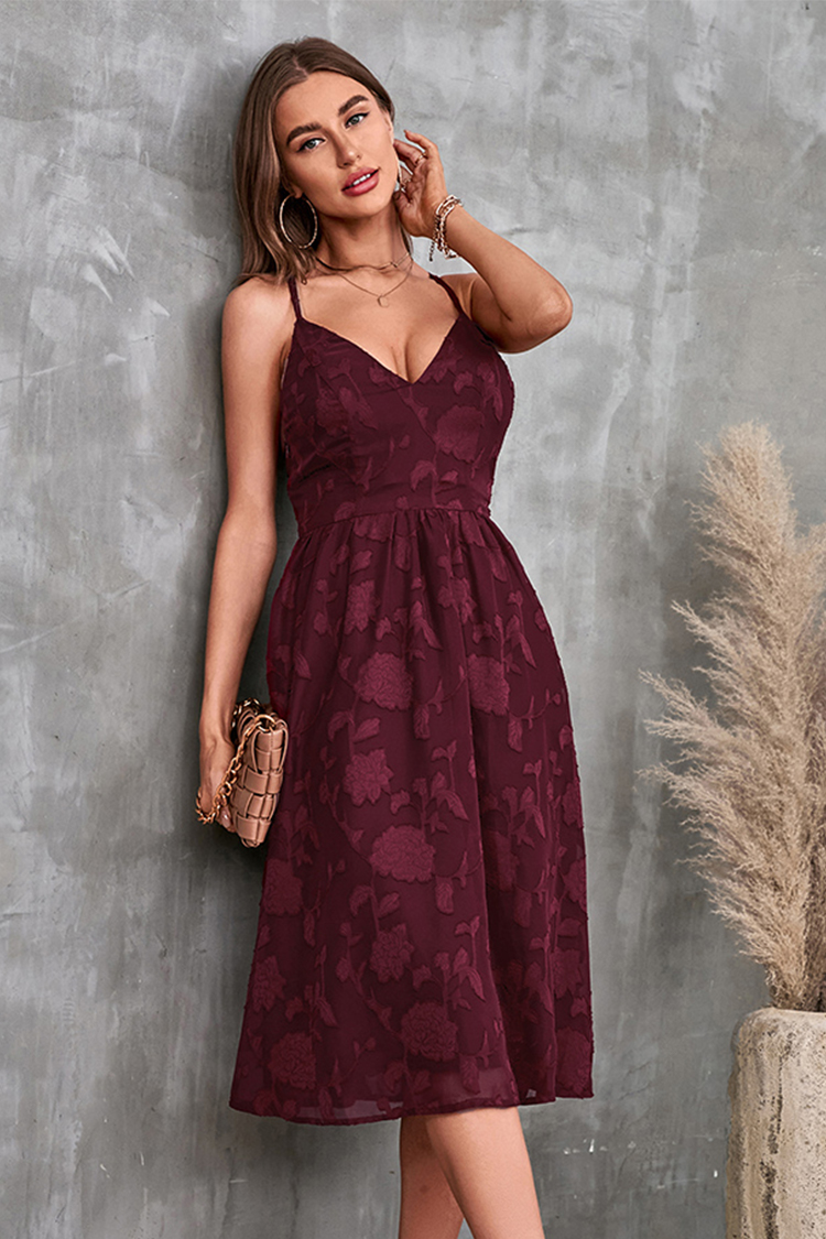 V-Ausschnitt Dünne Träger Rückenfreies Slip Kleid