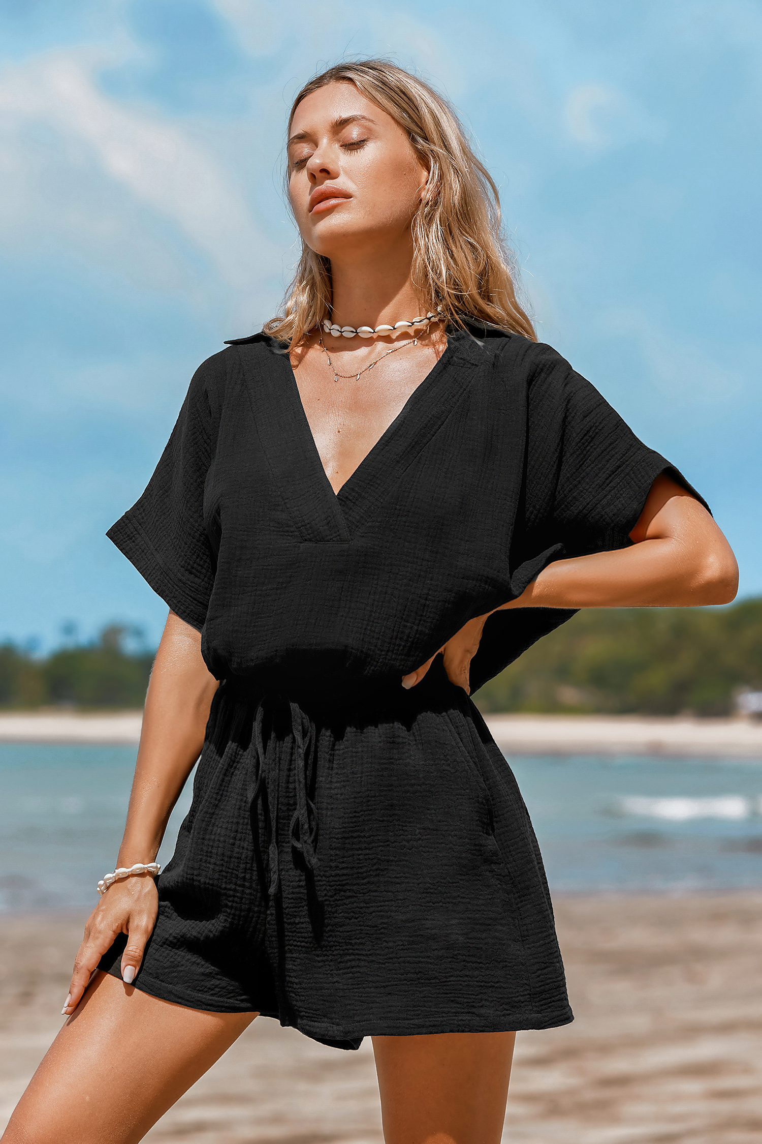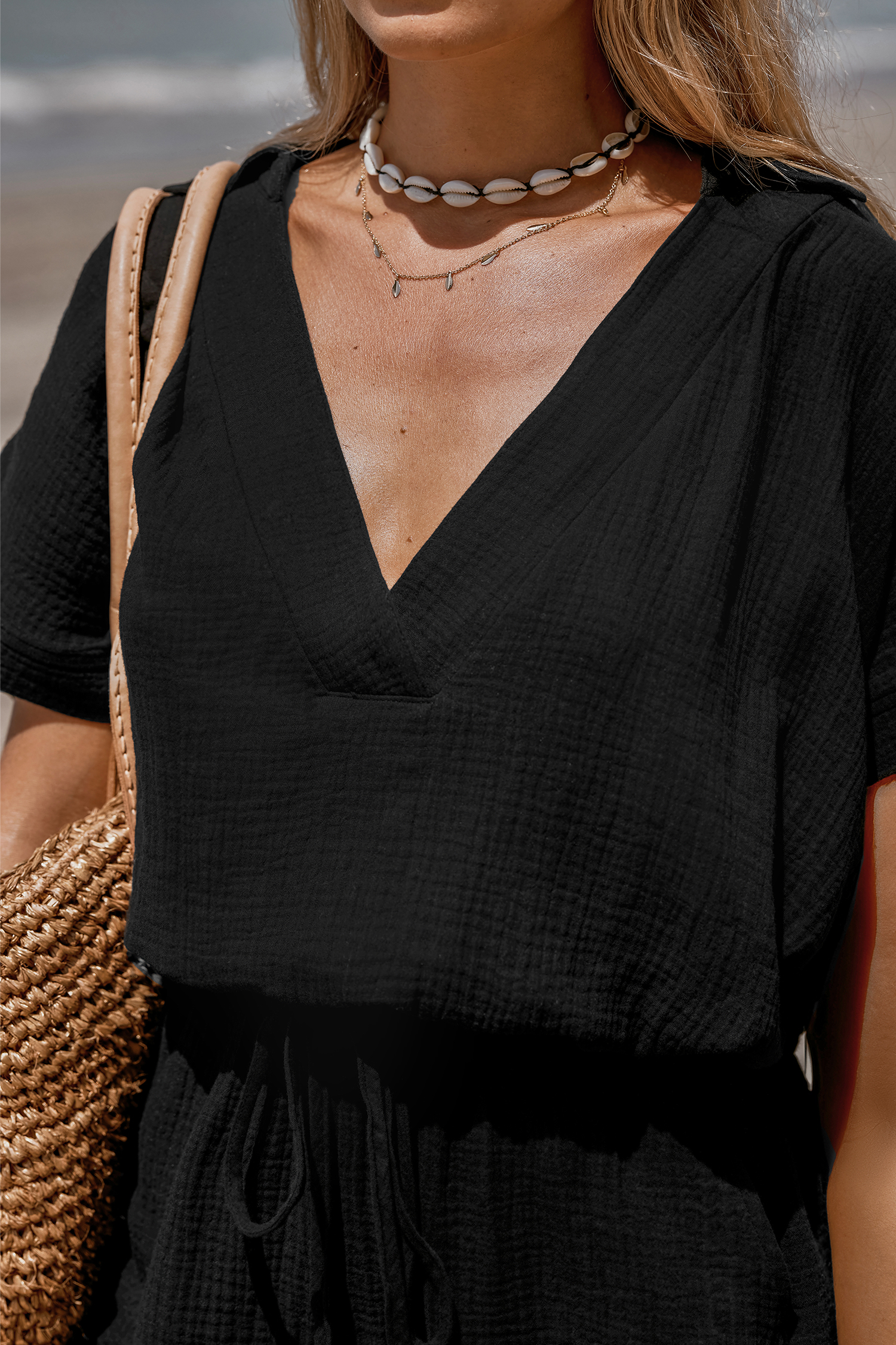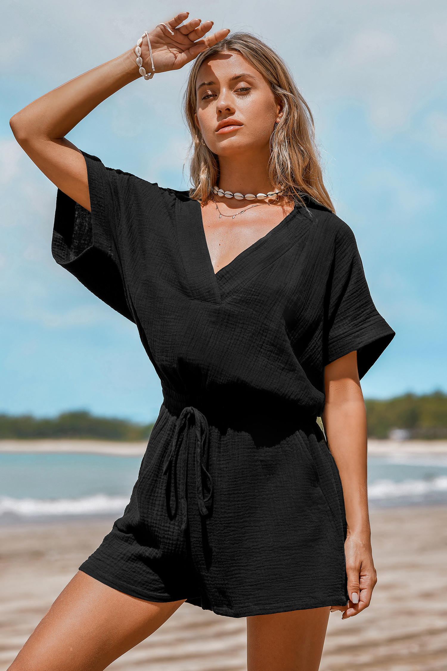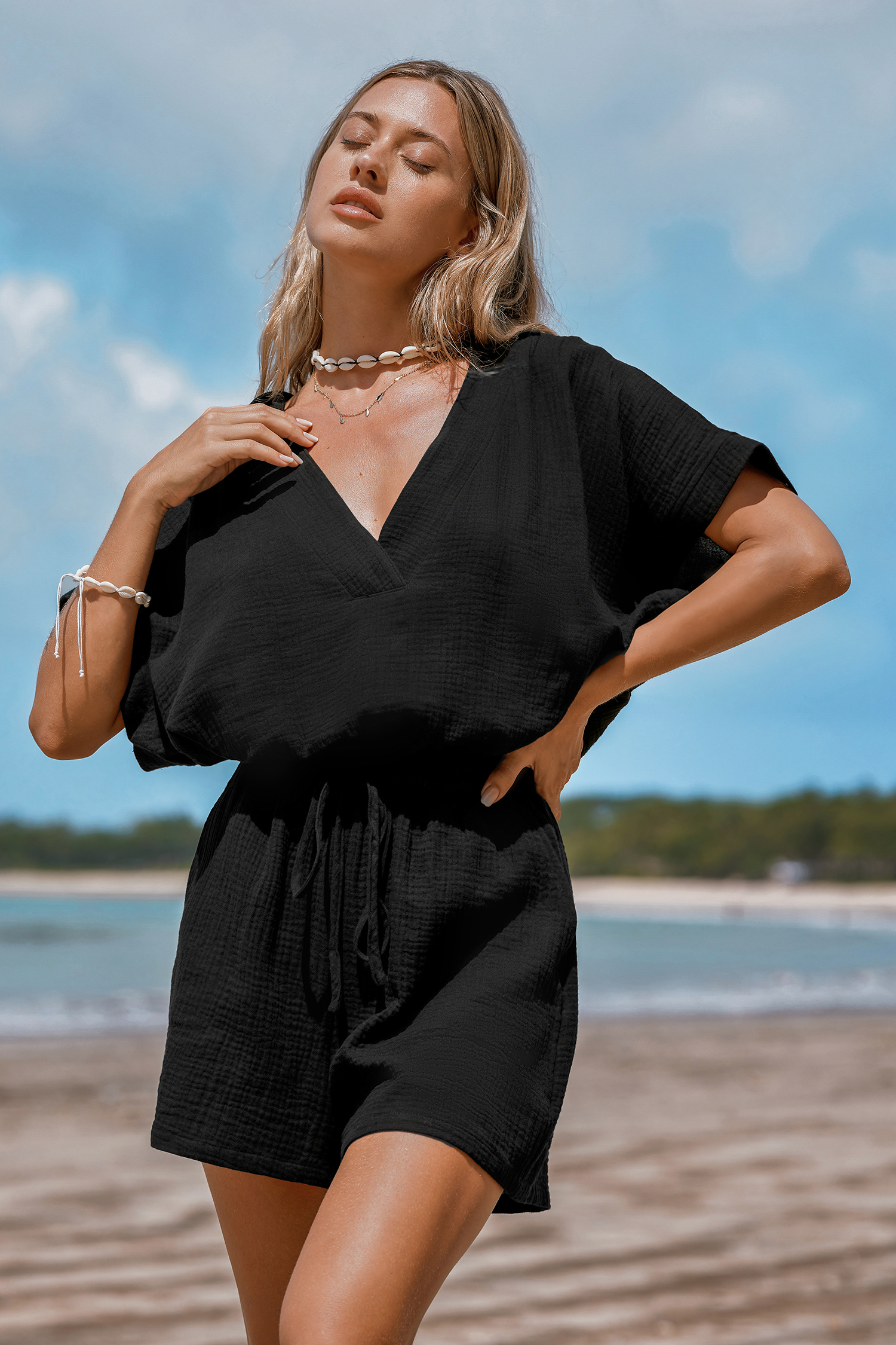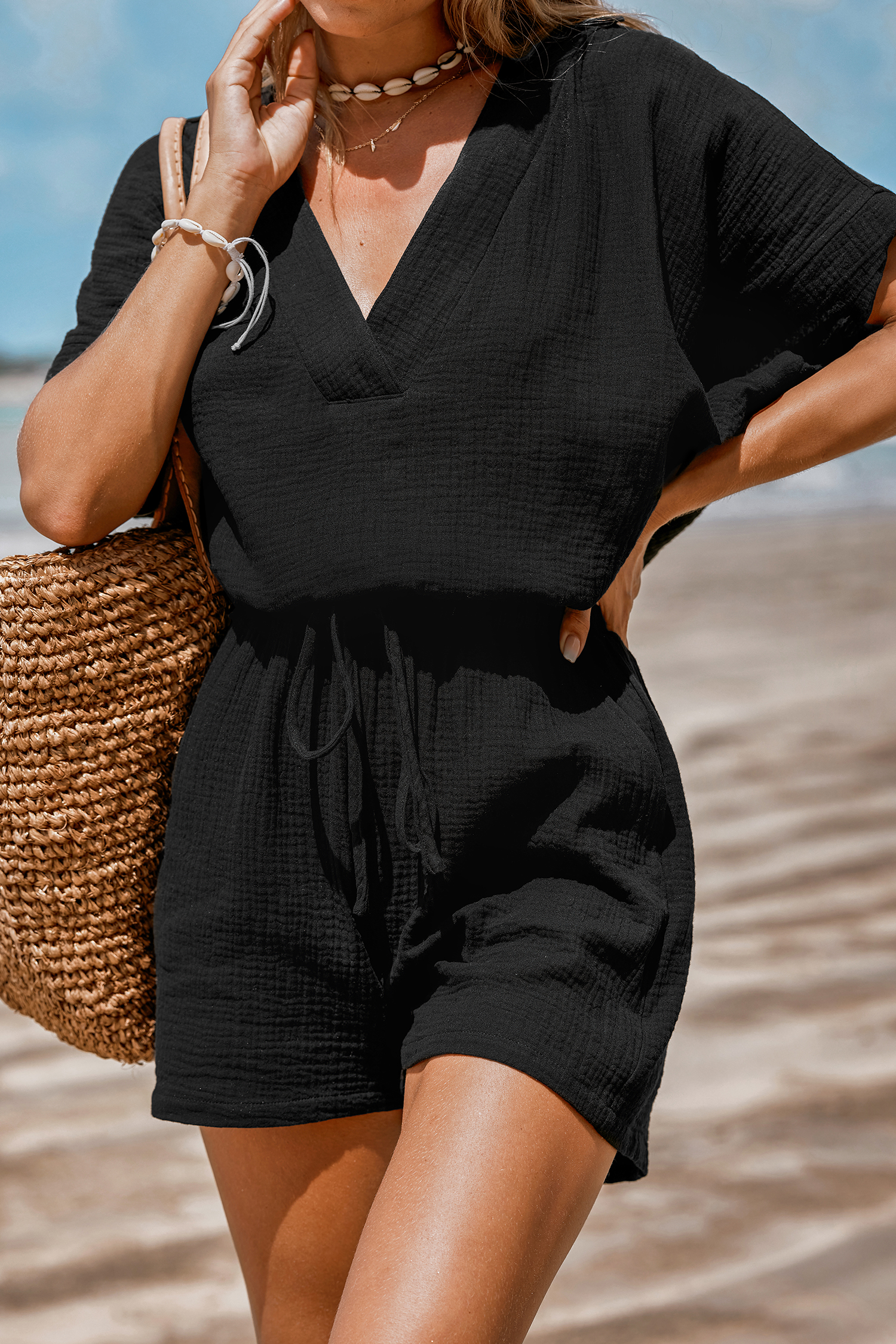 Reine Baumwolle Strampler mit V-Ausschnitt und Kordelzug