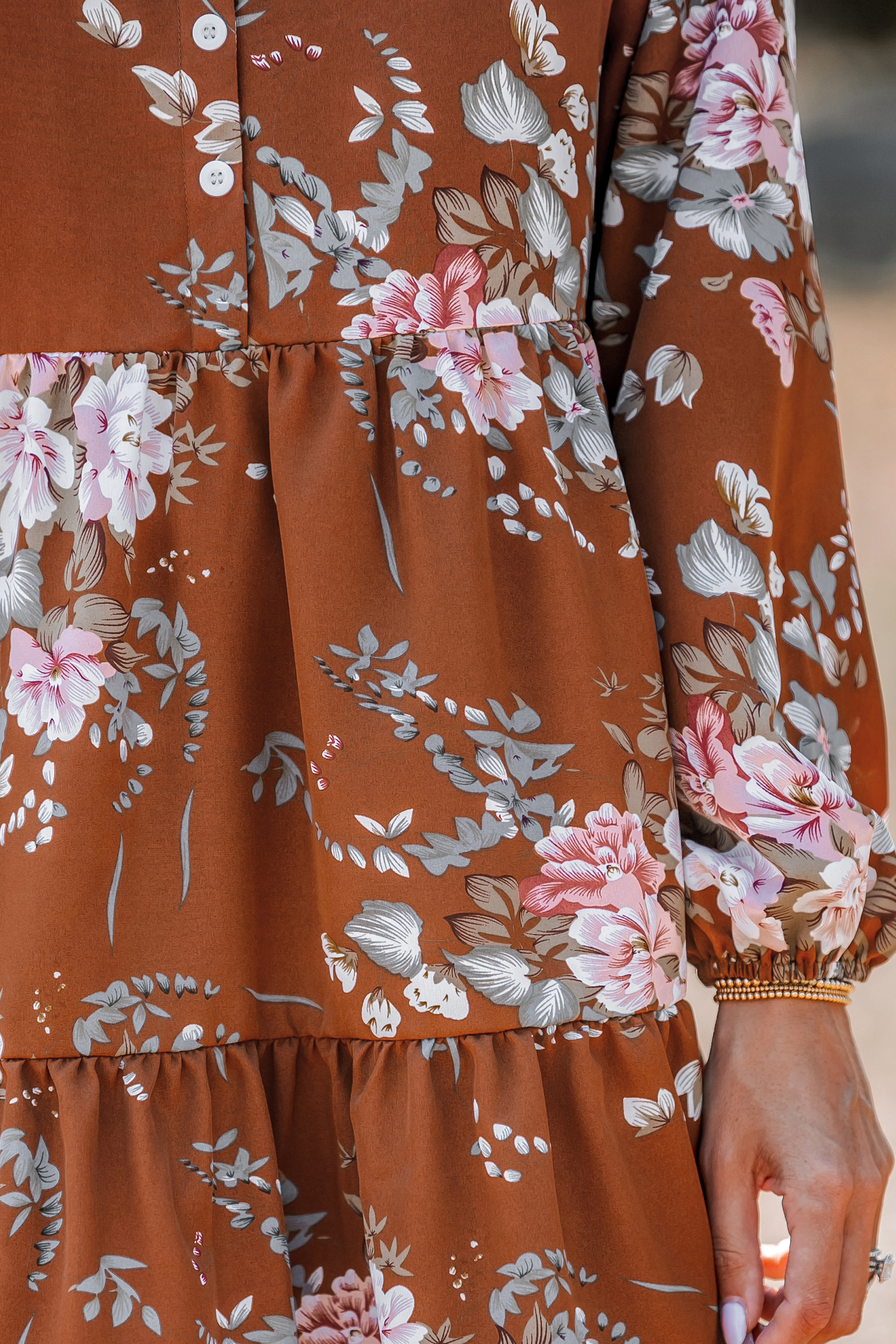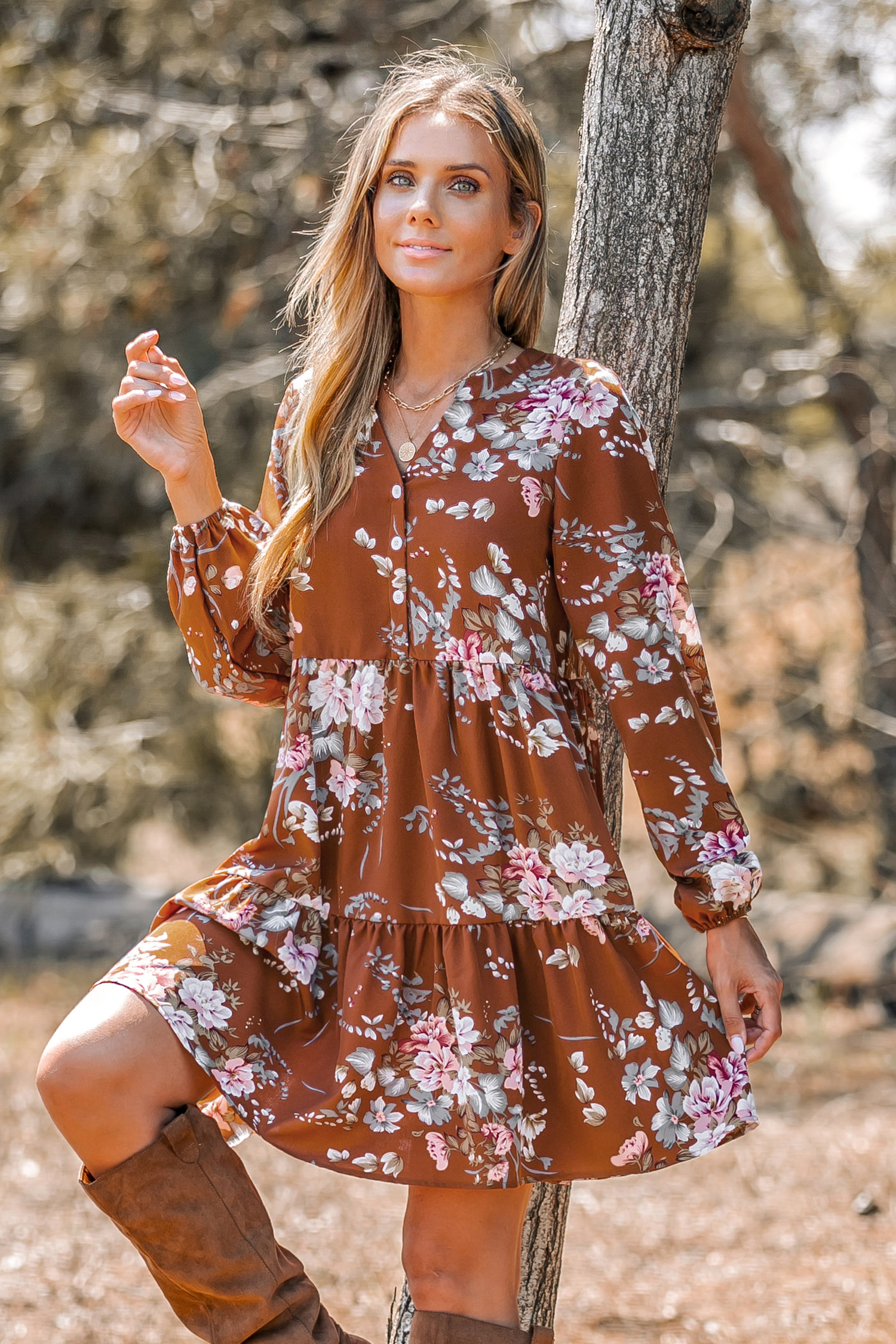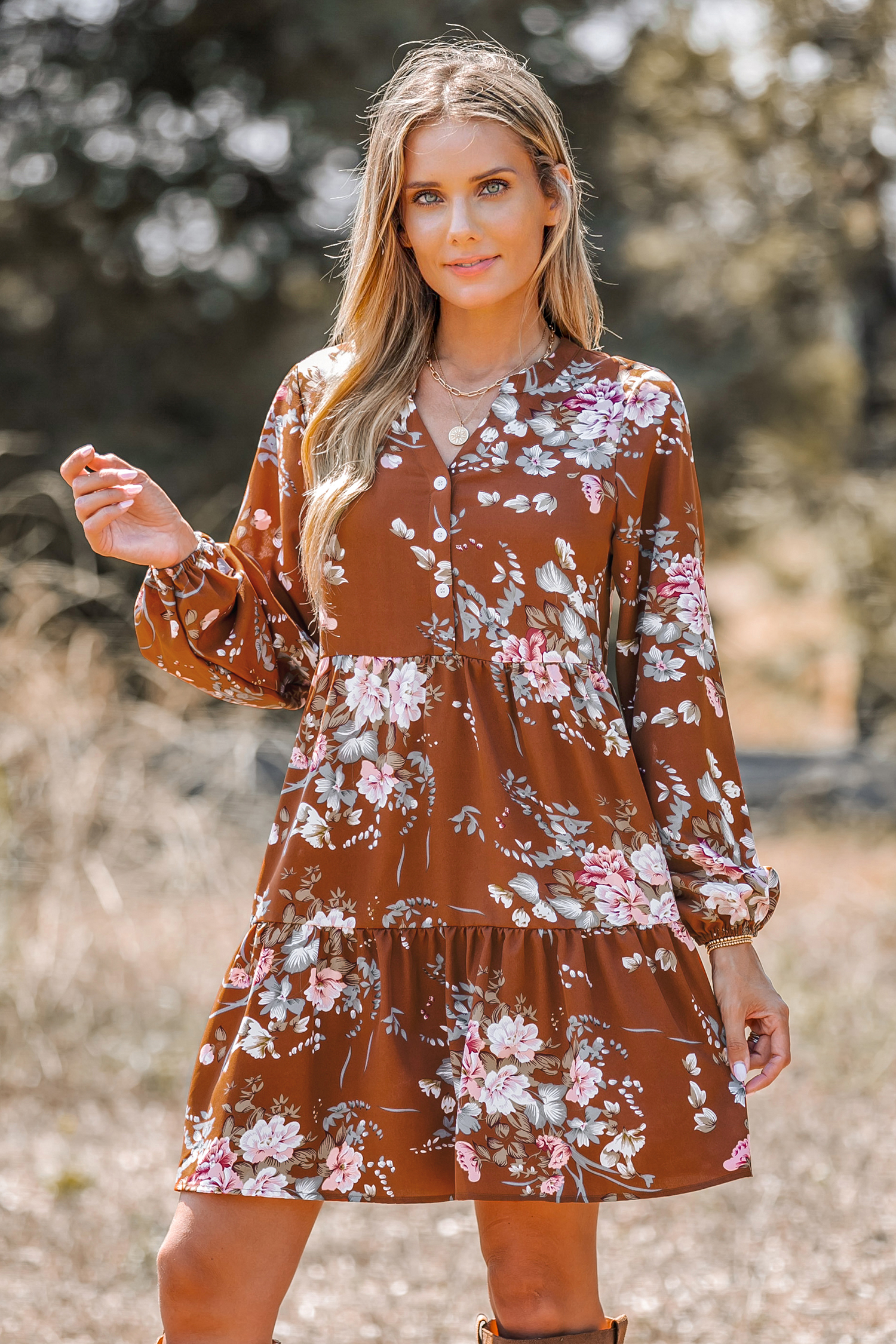 Volant-Minikleid mit Blumenmuster und Knopfleiste