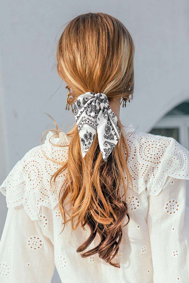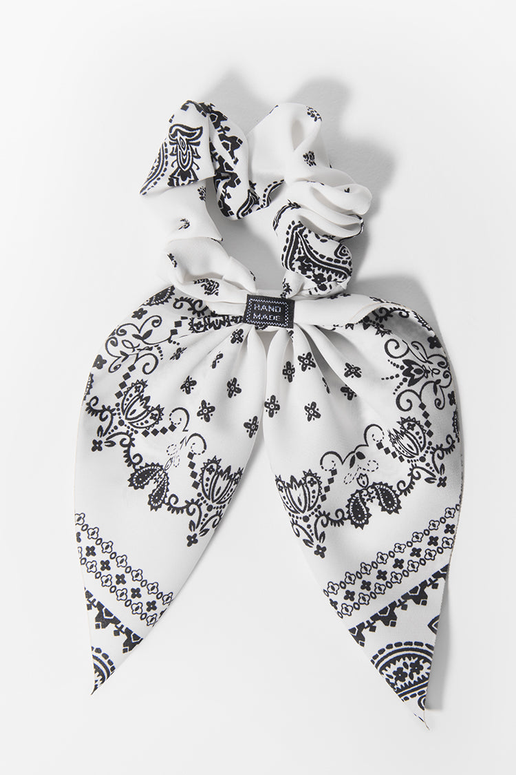 Weißer Haargummi mit Schleife und Paisley-Muster