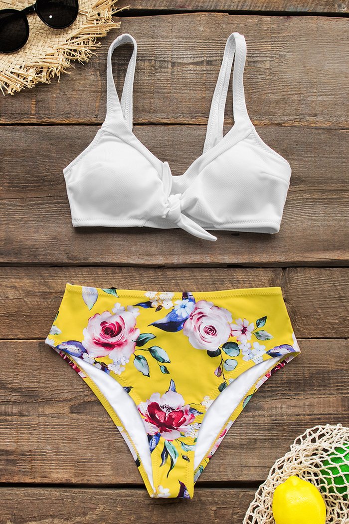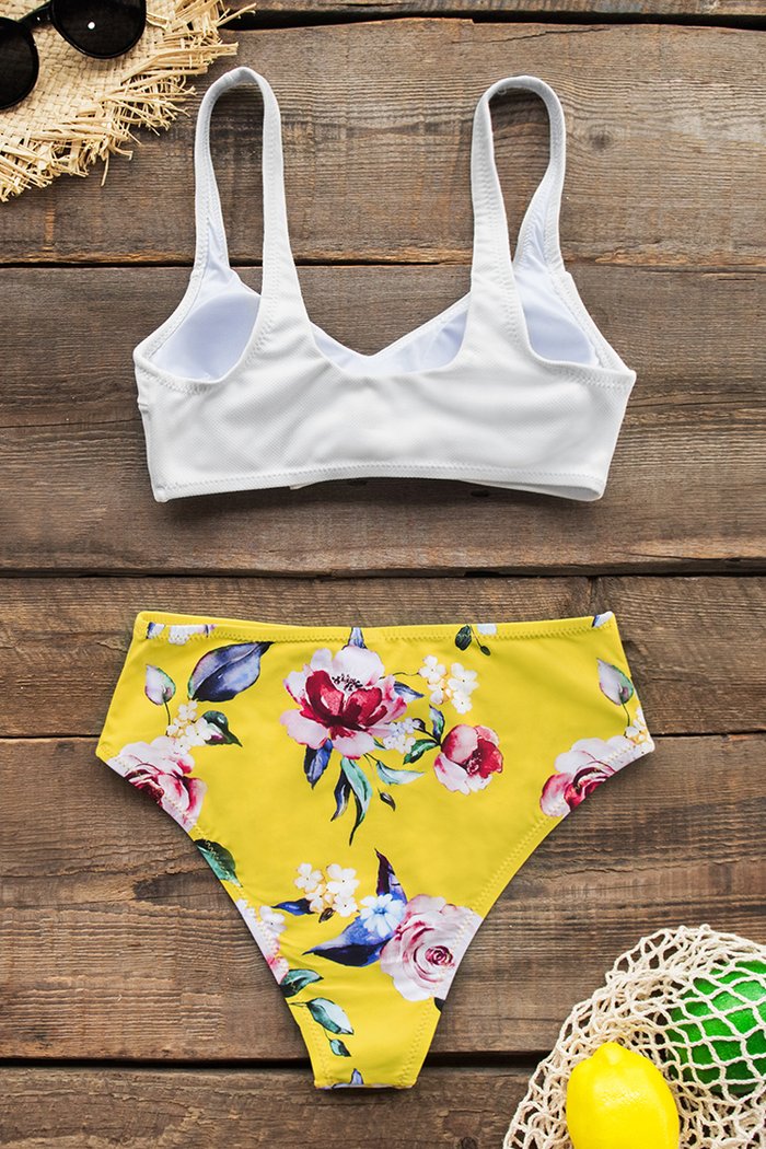 HomeWeißer und gelber sportlicher High-Waisted Bikini