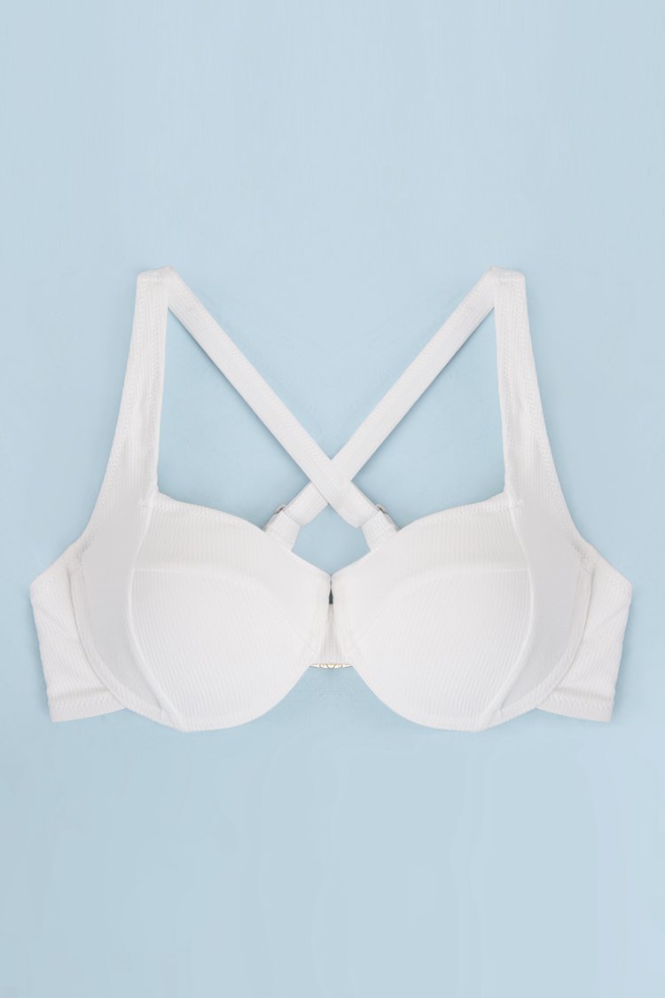 HomeWeißes geripptes Bikinioberteil mit Bügel