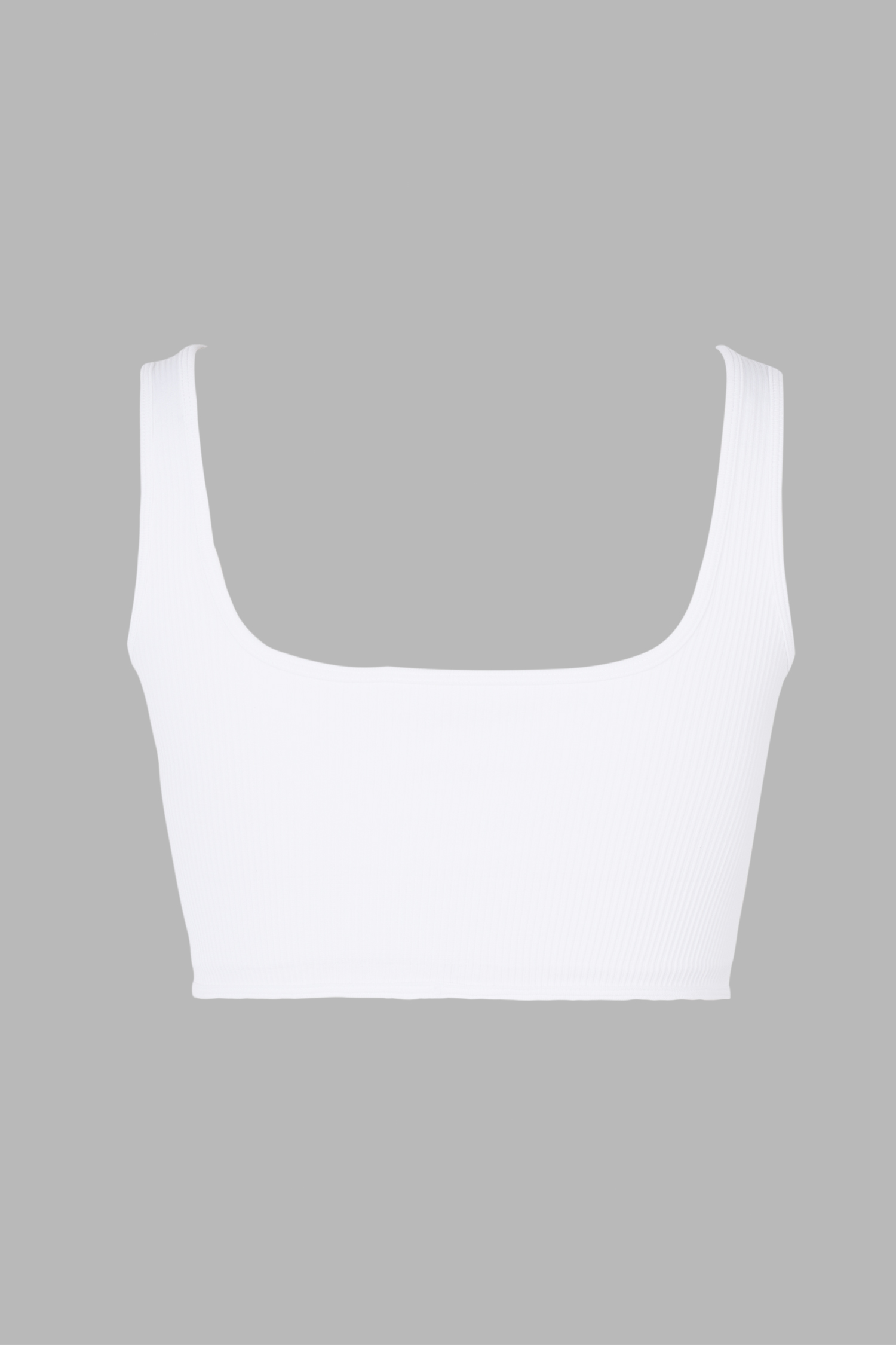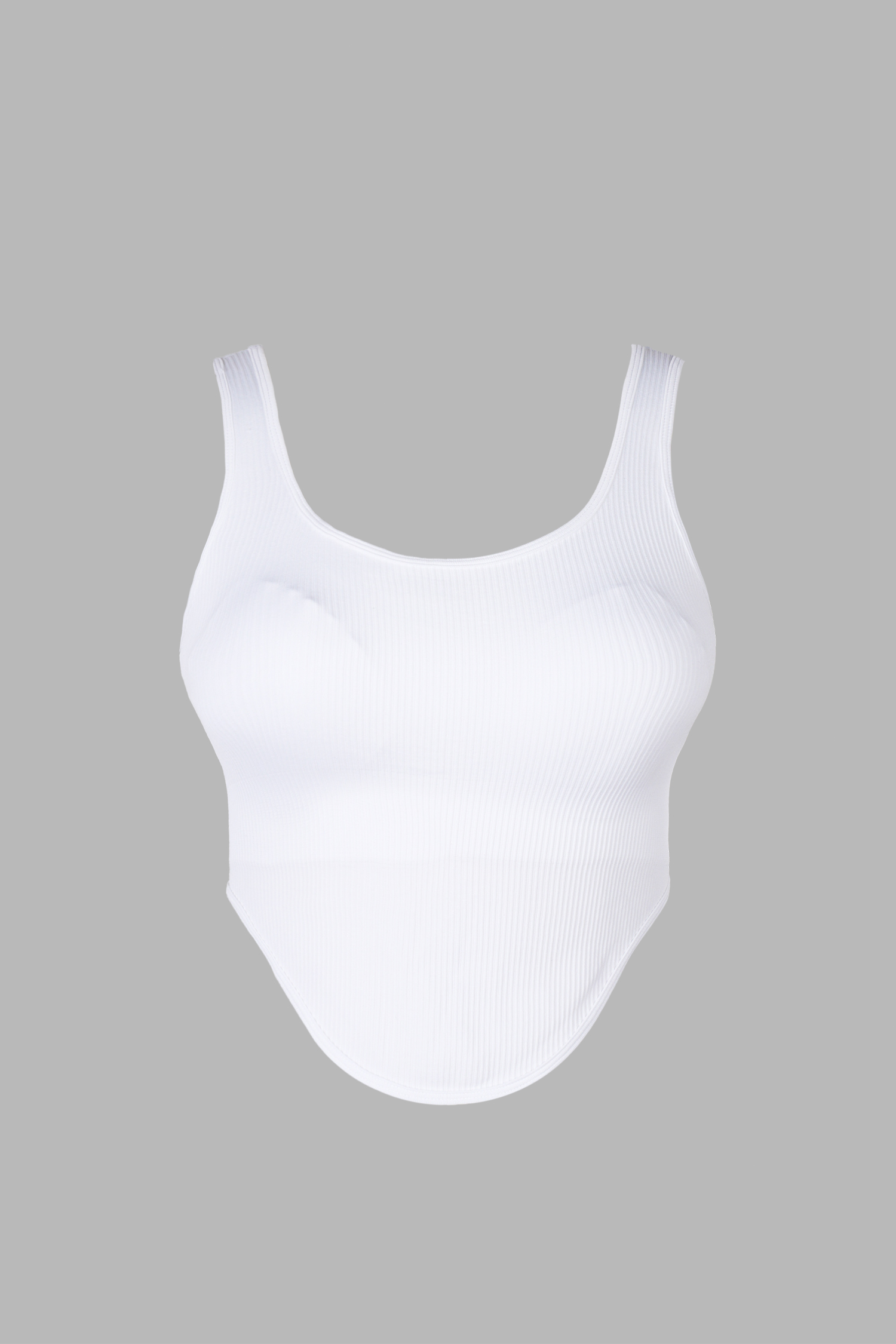 Nahtloses weißes Rundhals-Tank-Top mit geschwungenem Saum