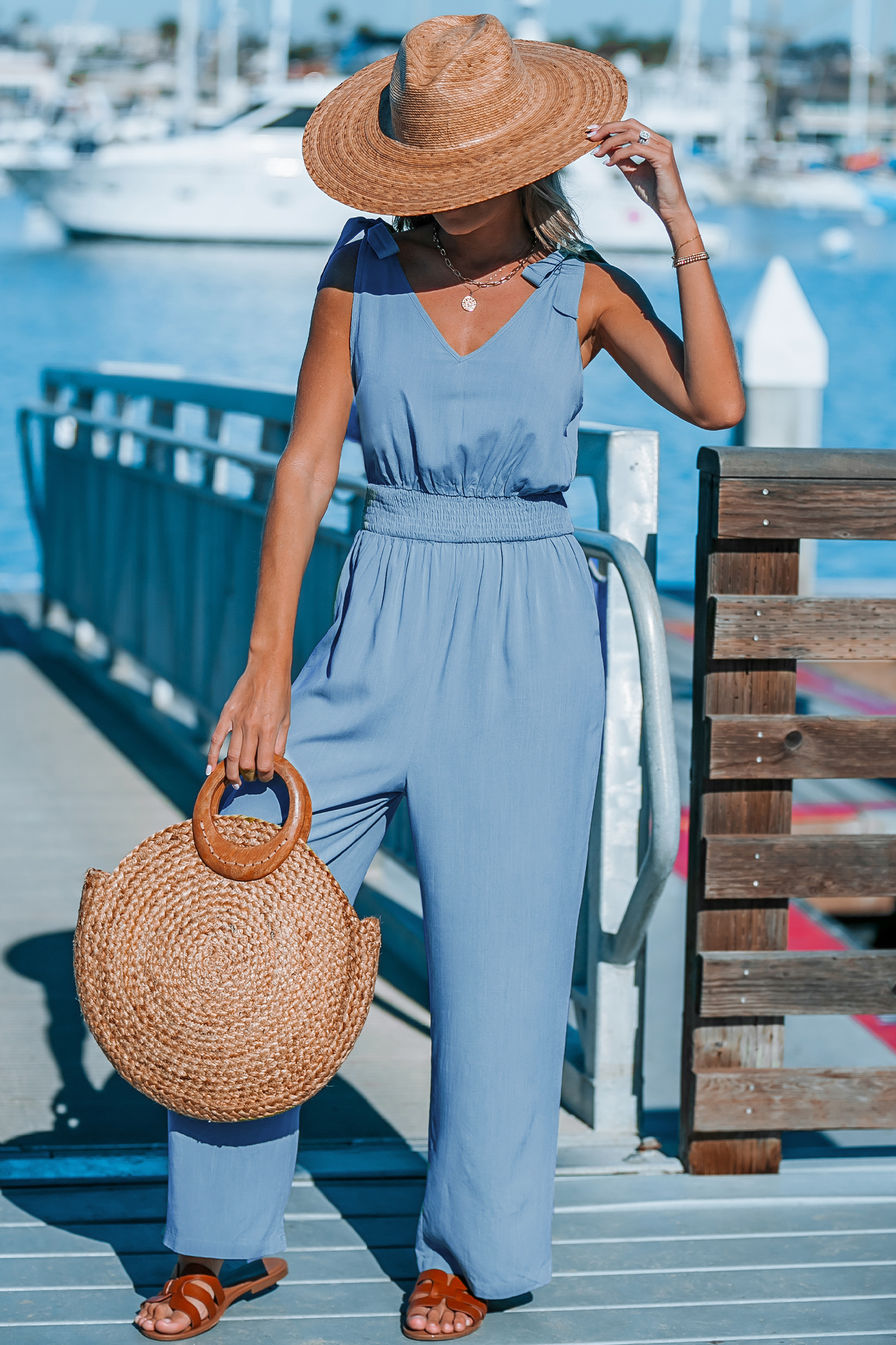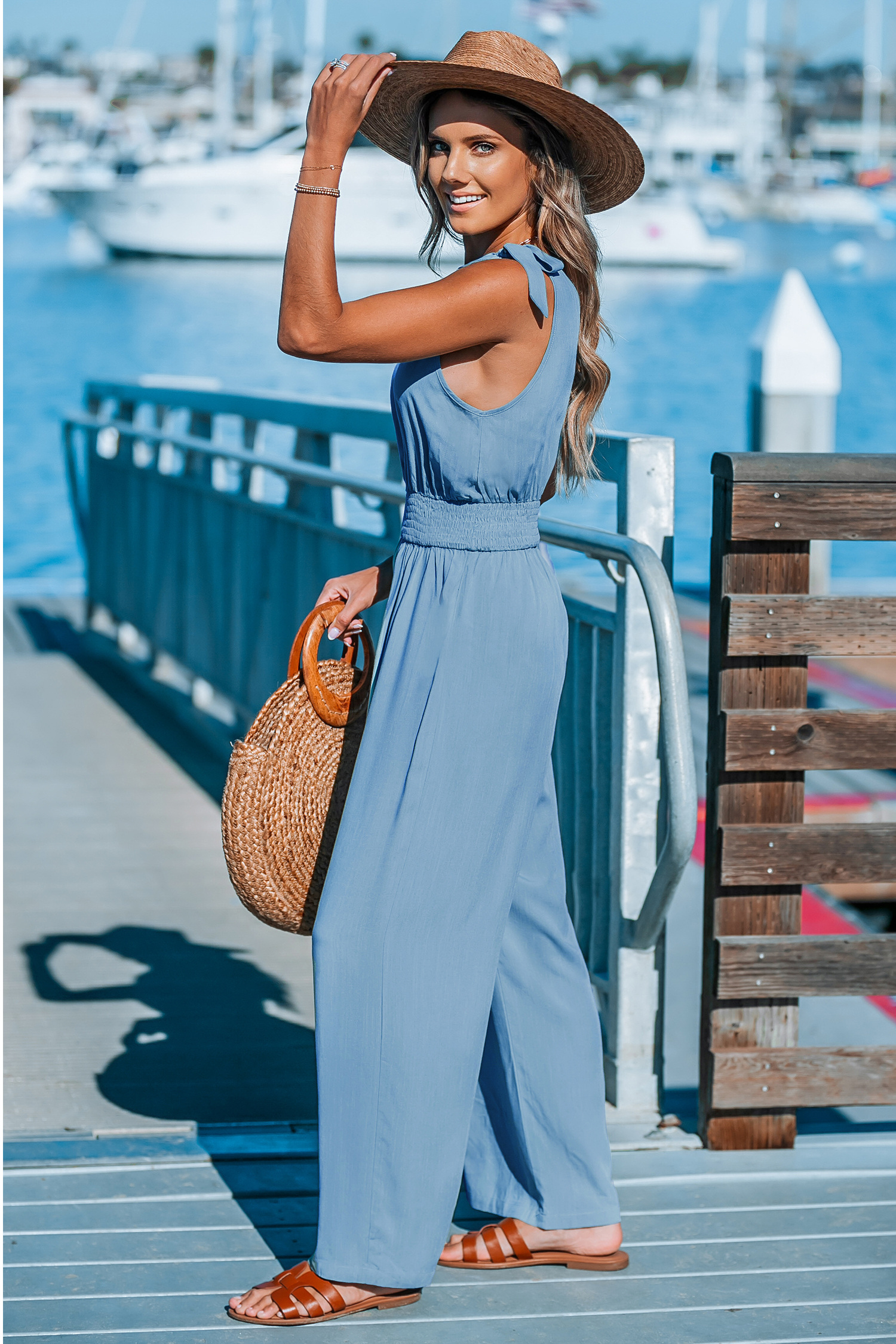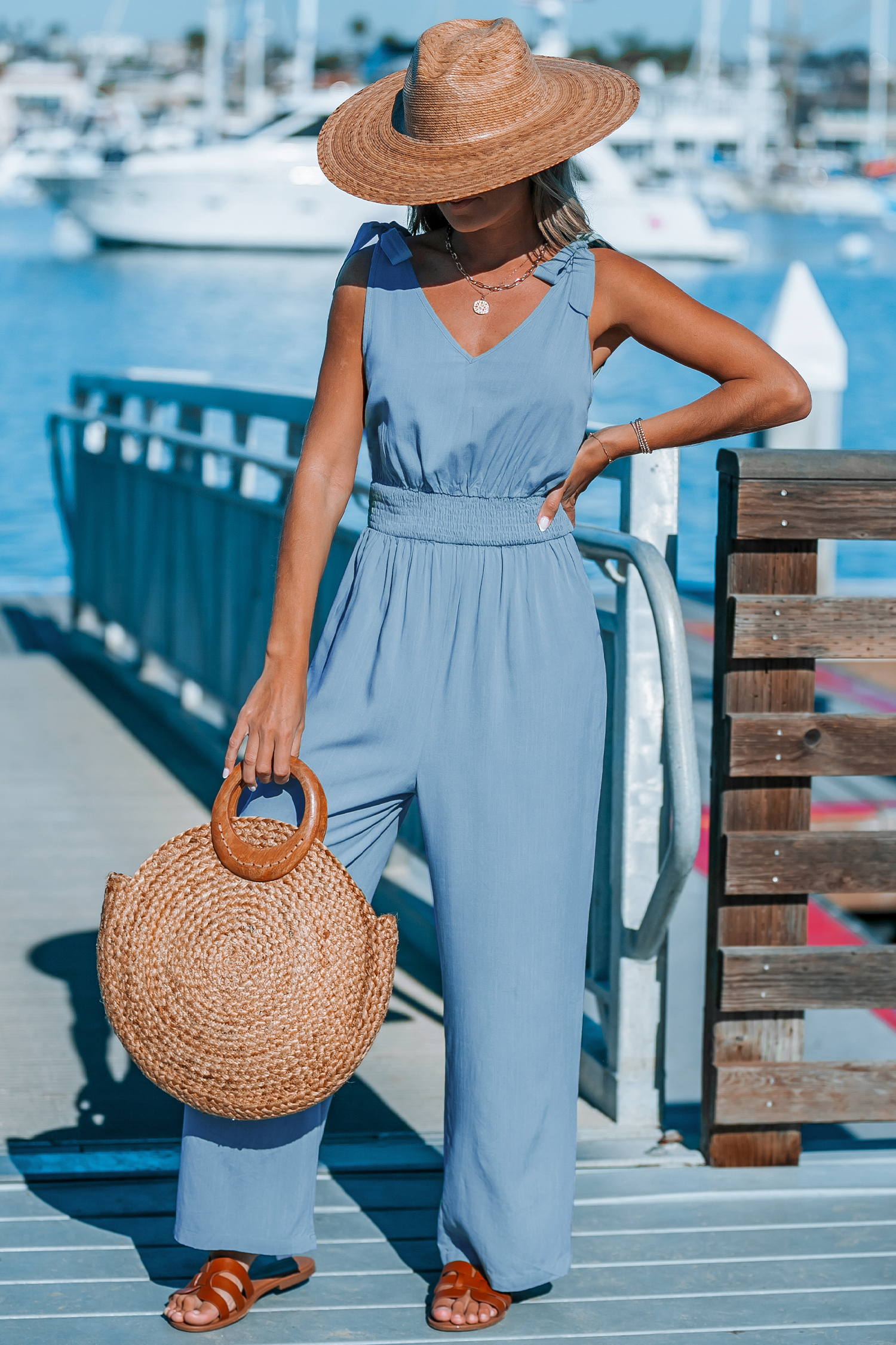 Weites Bein Jumpsuit mit Schulterband